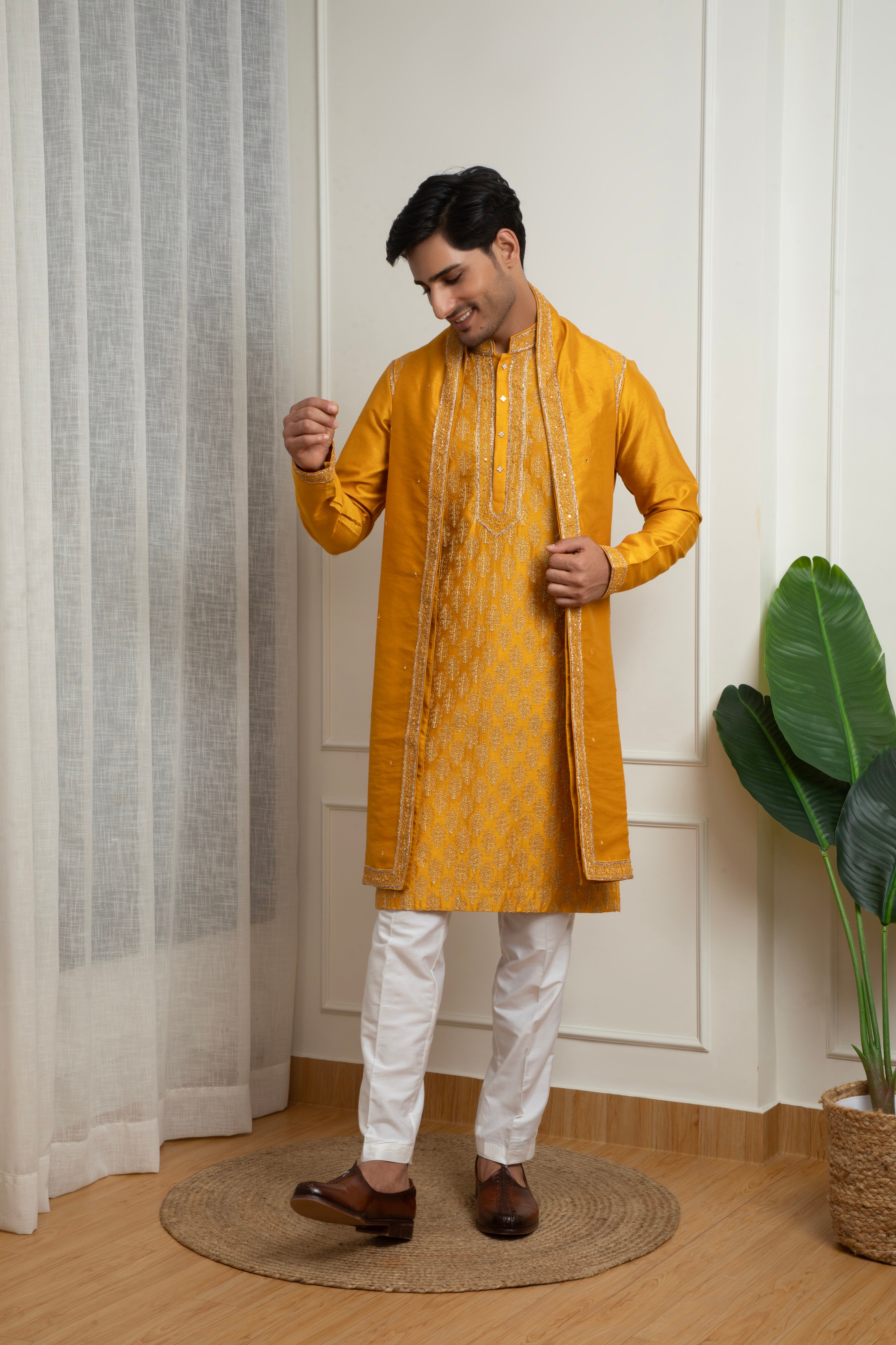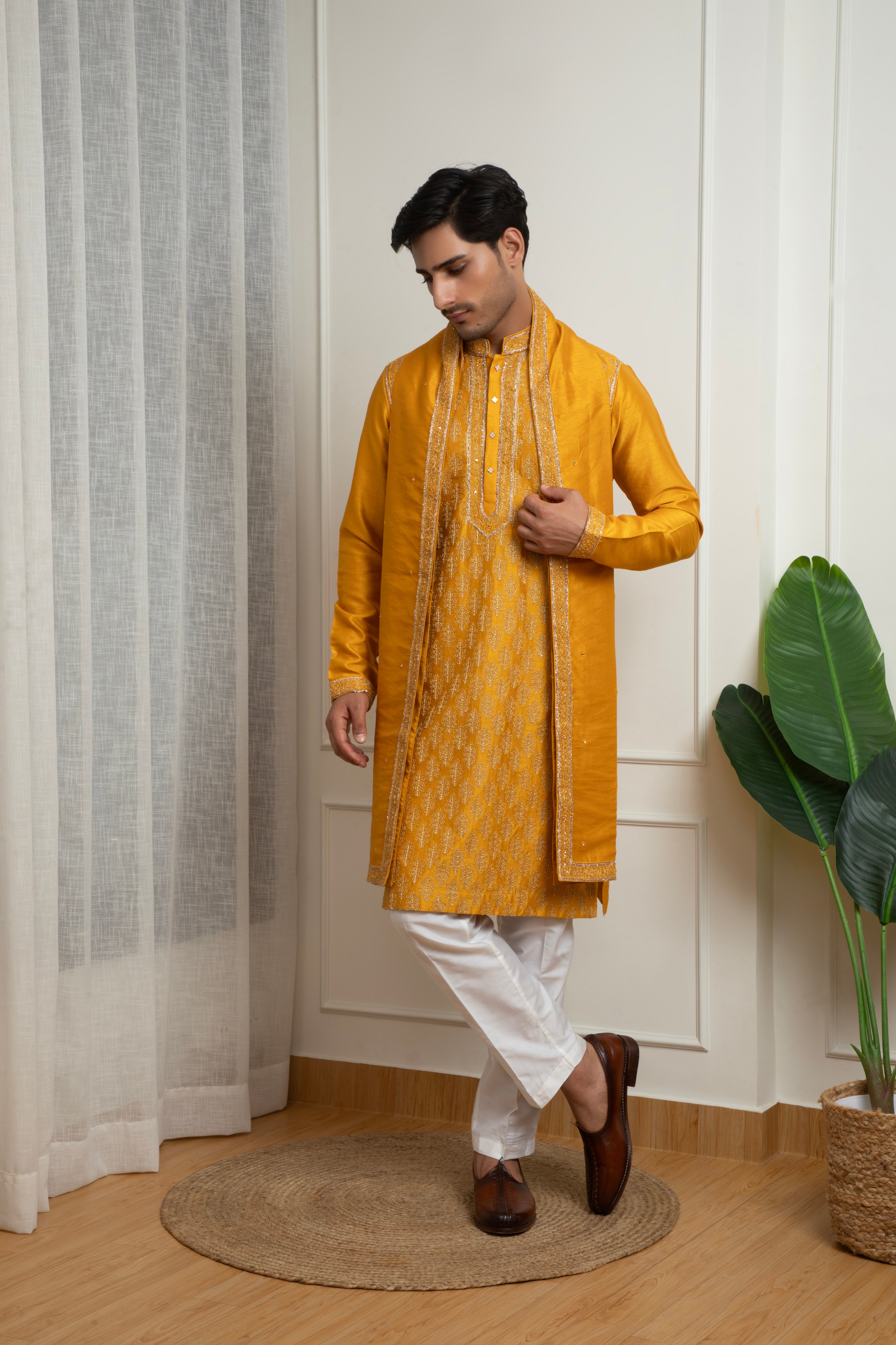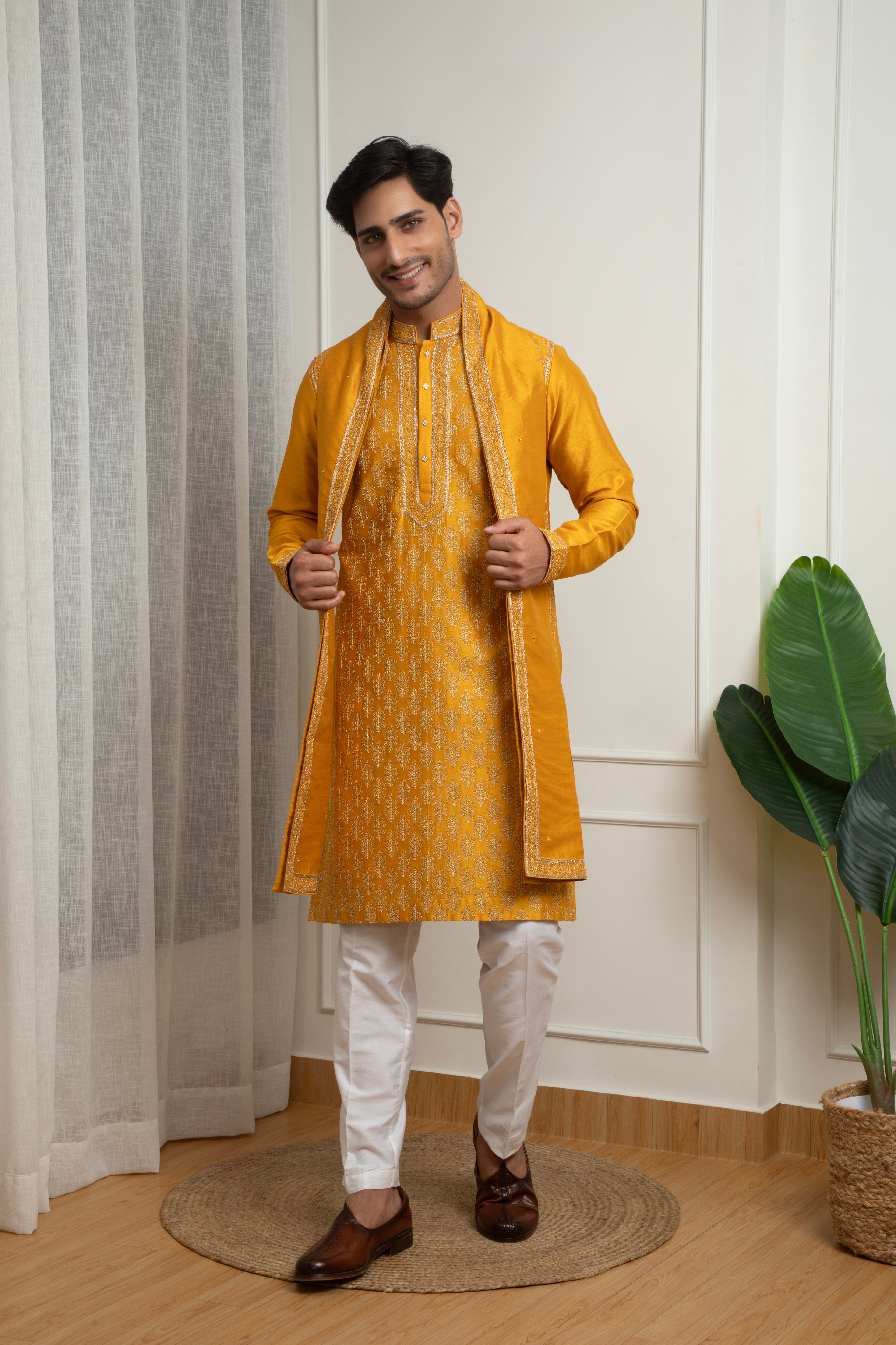 I bought this very delightful pattern of kurta suit & jacket from dulhapaksh store.