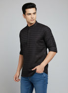 Black Striped Cotton Short Kurta