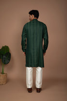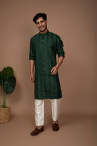 Emerald Green Linen Semi-Indowestern Kurta and Pant Set