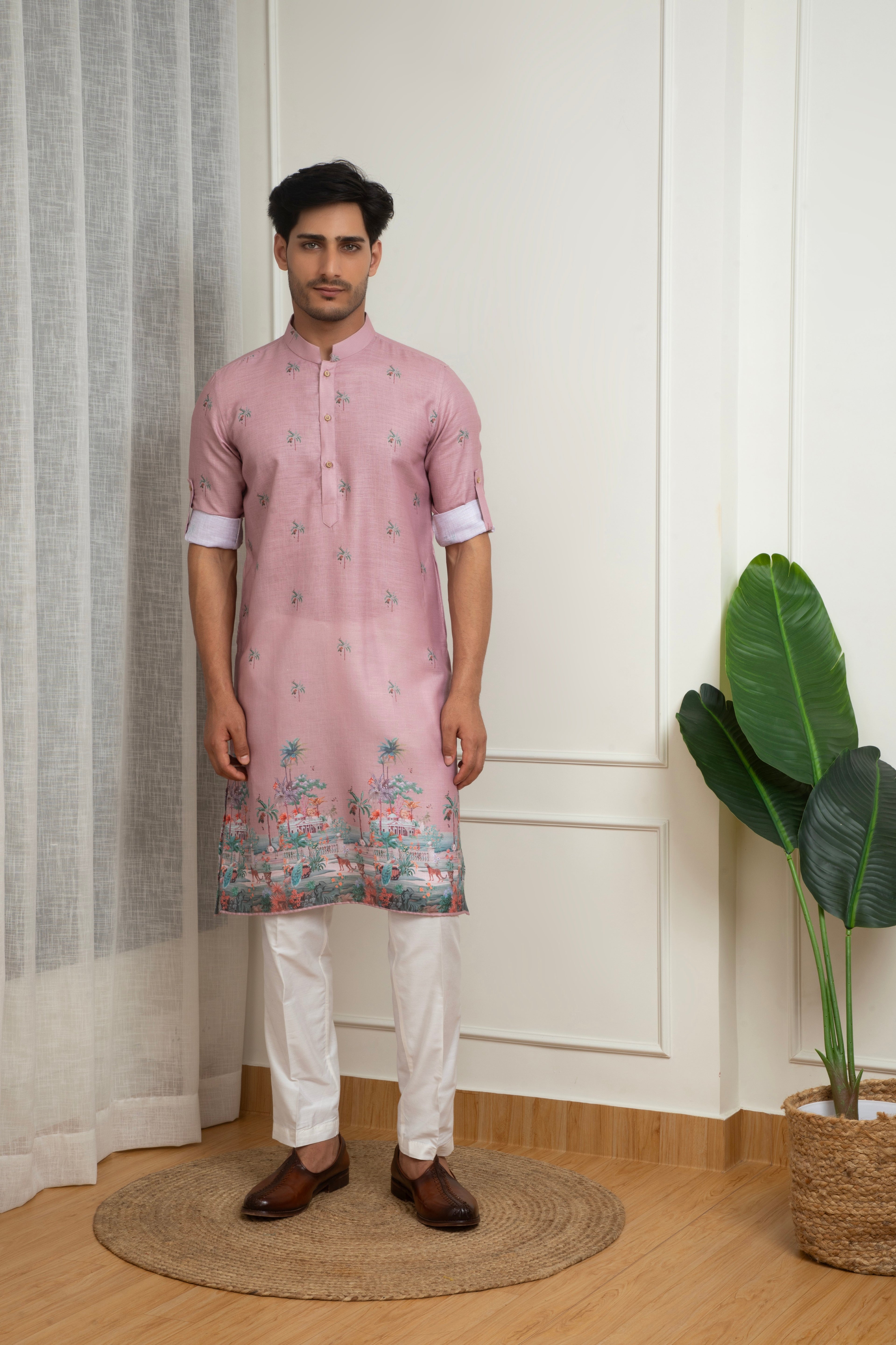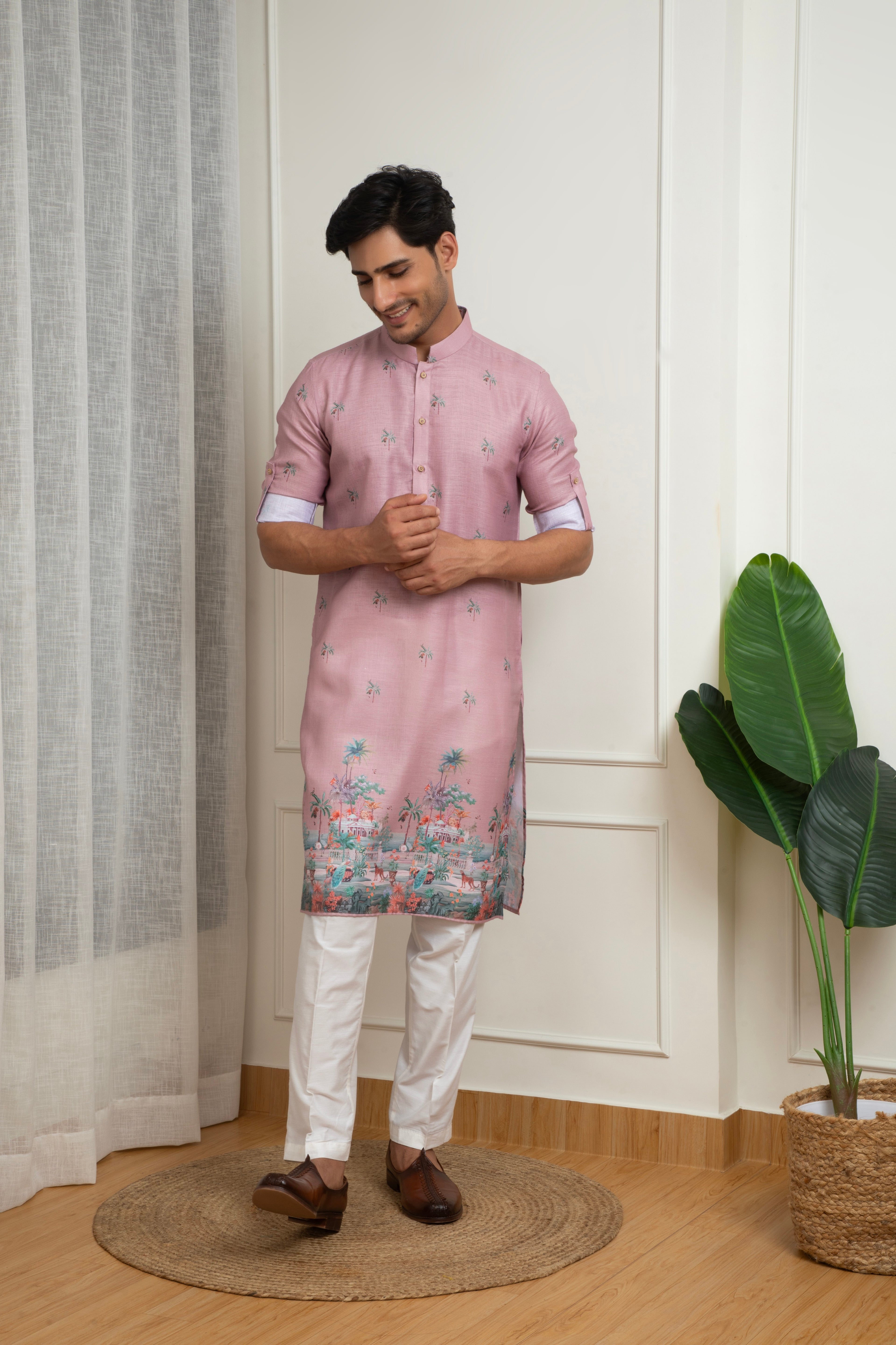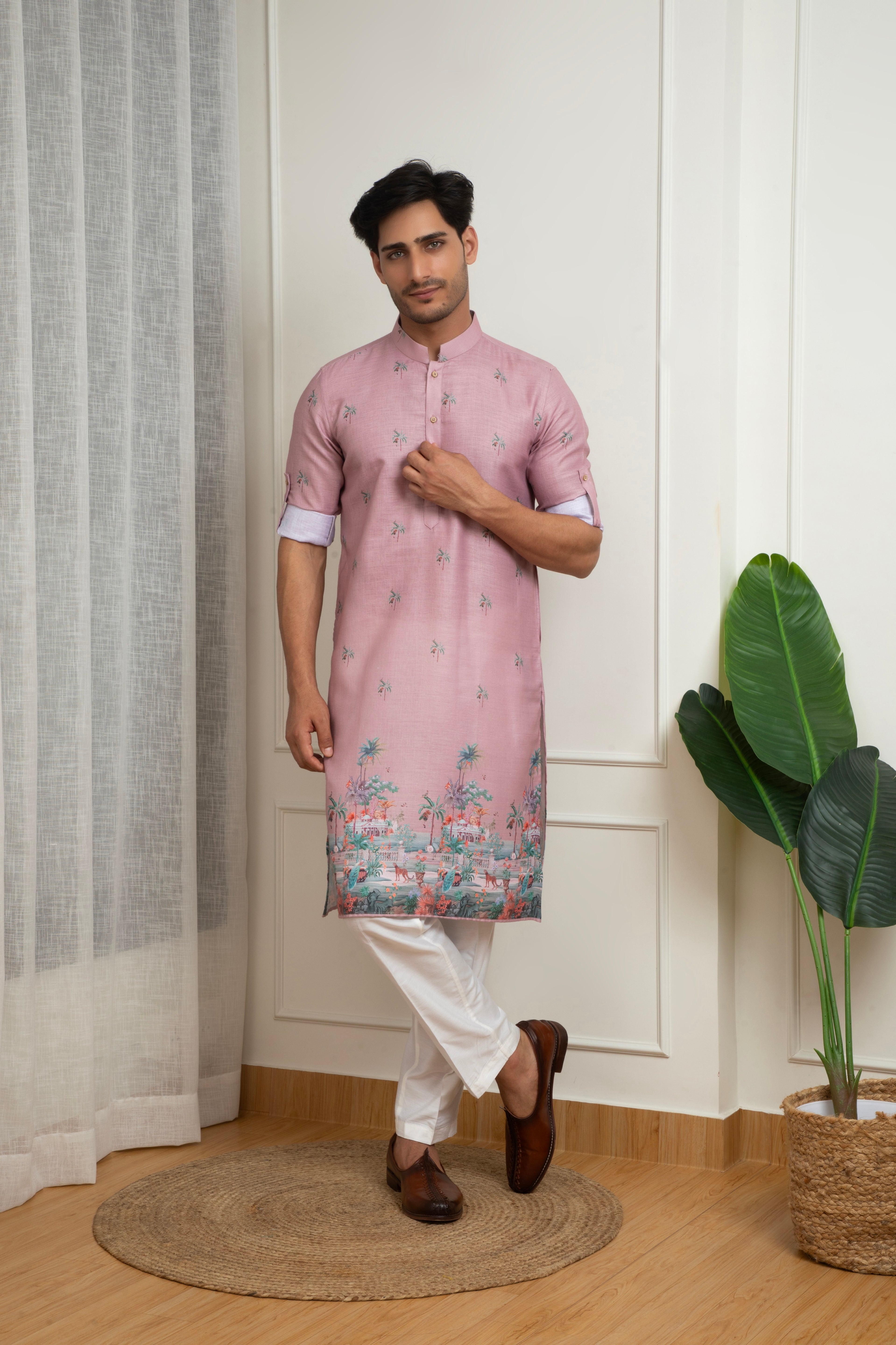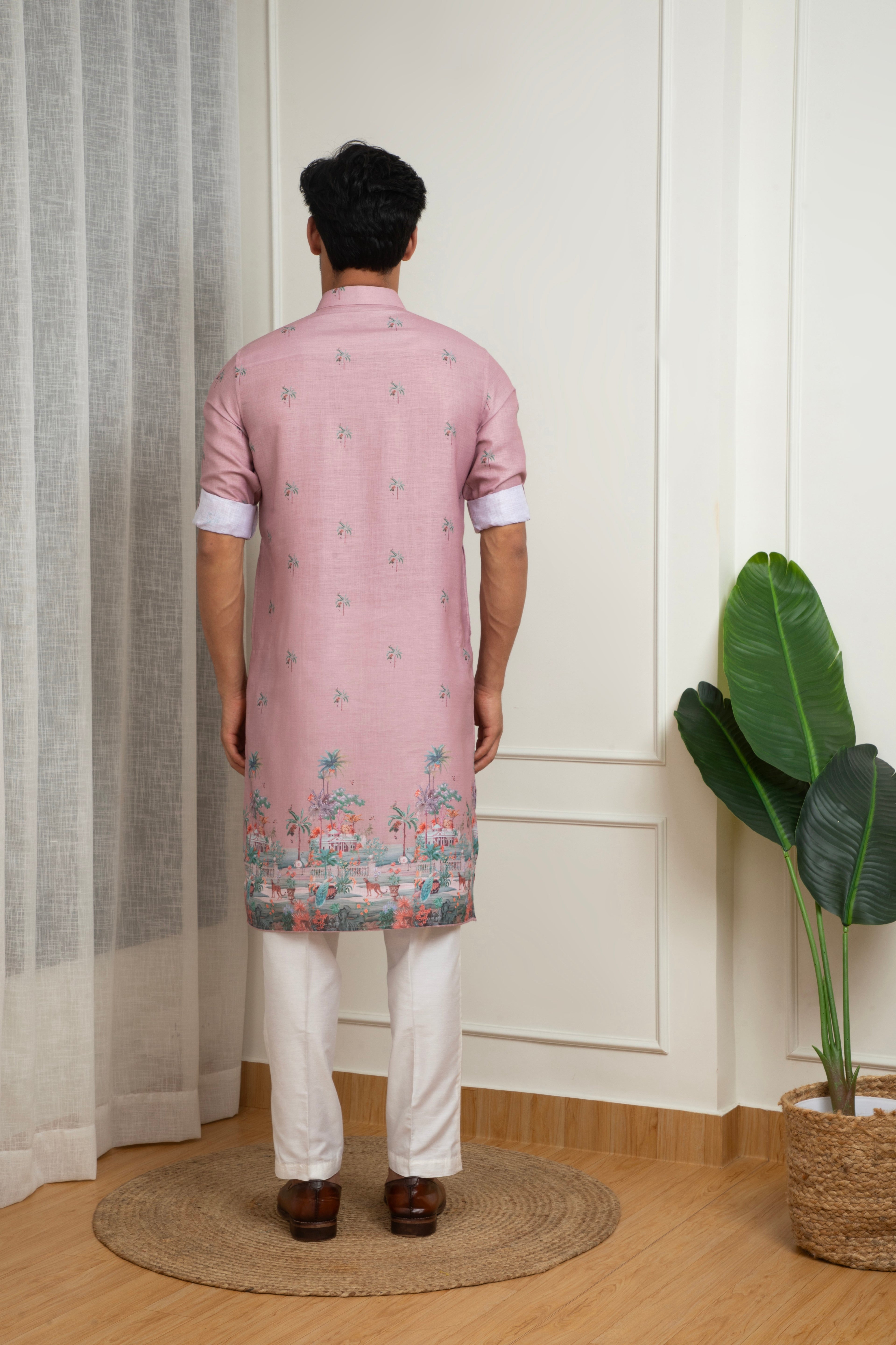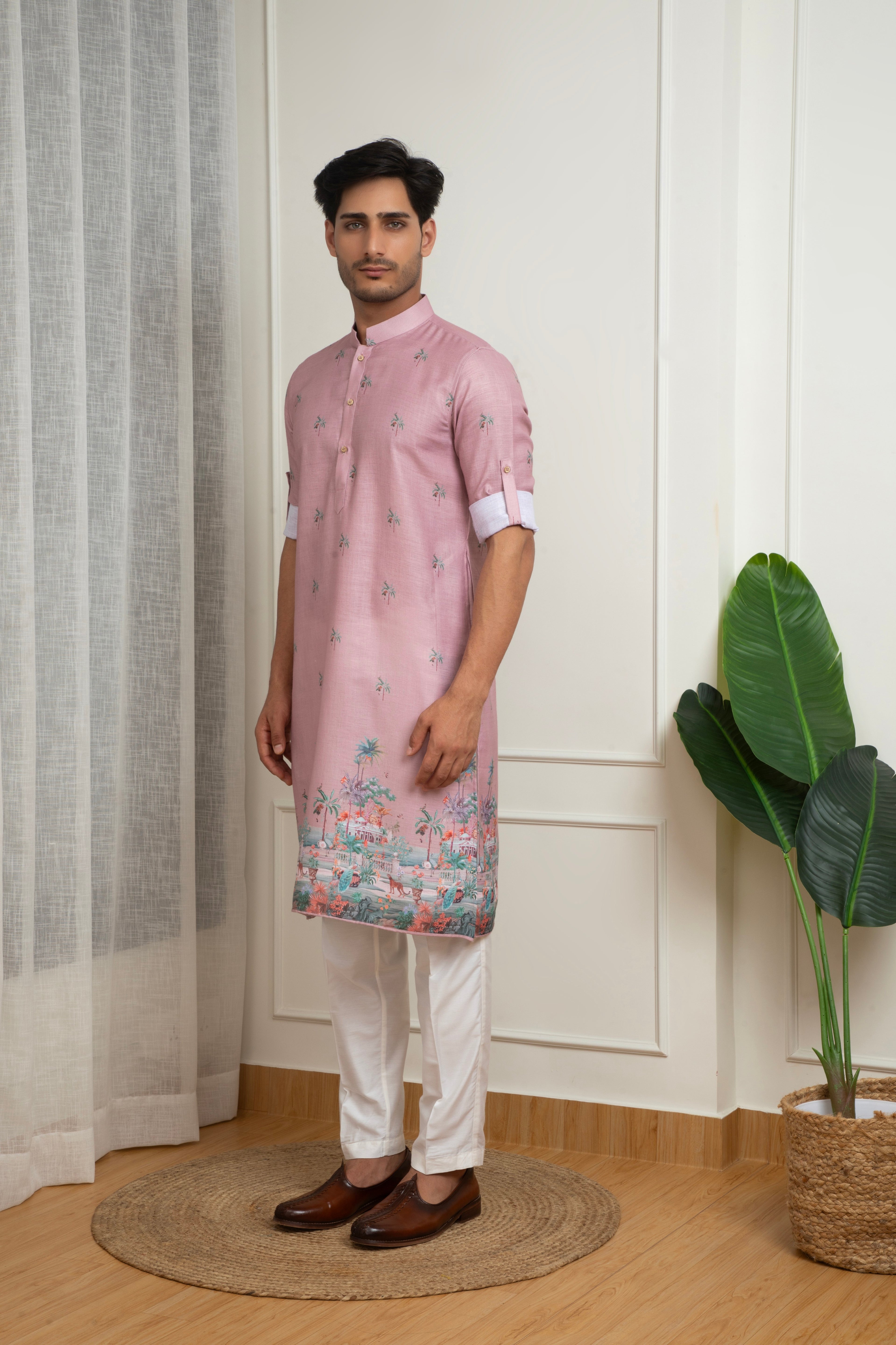 Off-White Printed Kurta with Palace and Peacock Motifs