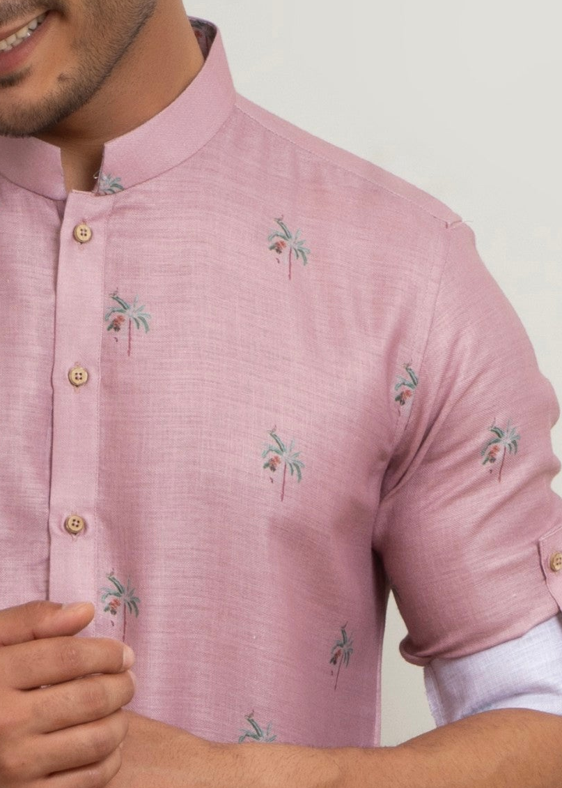 Cream Cotton Kurta with Printed Embroidery & Sequins