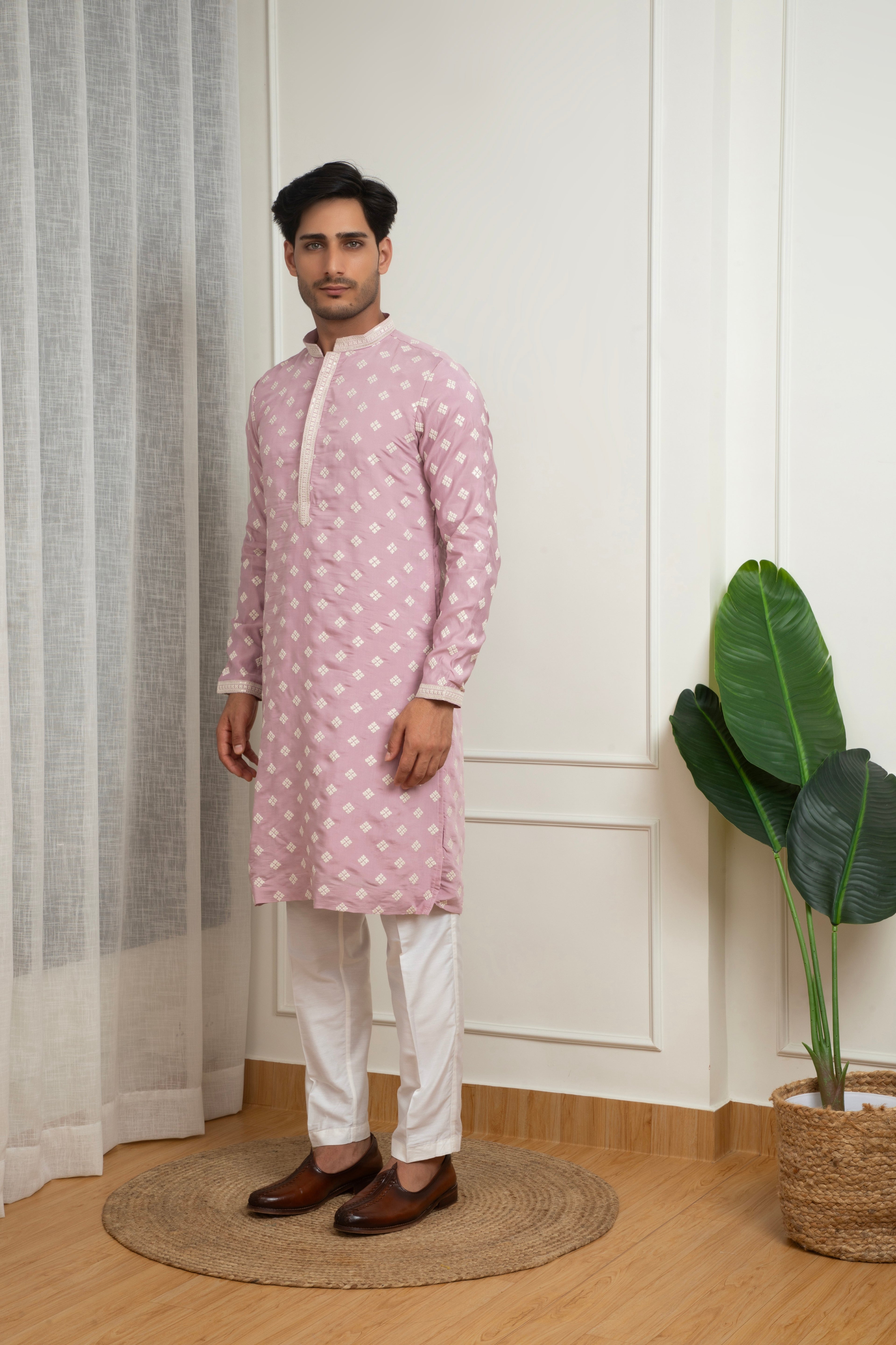 Lilac Ombre Cotton Kurta with Embroidered Sequined Border