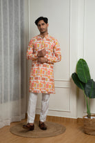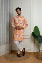 Orange Printed Cotton Kurta and White Pant Set