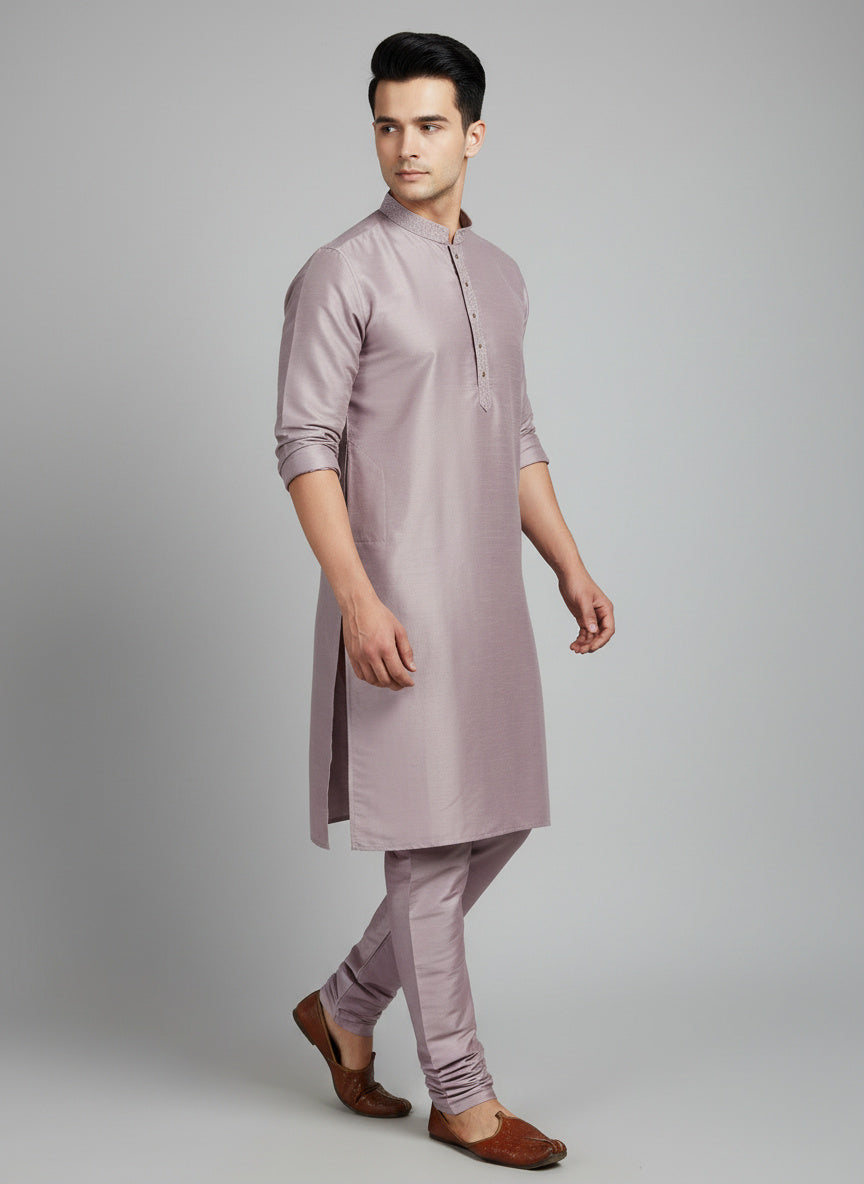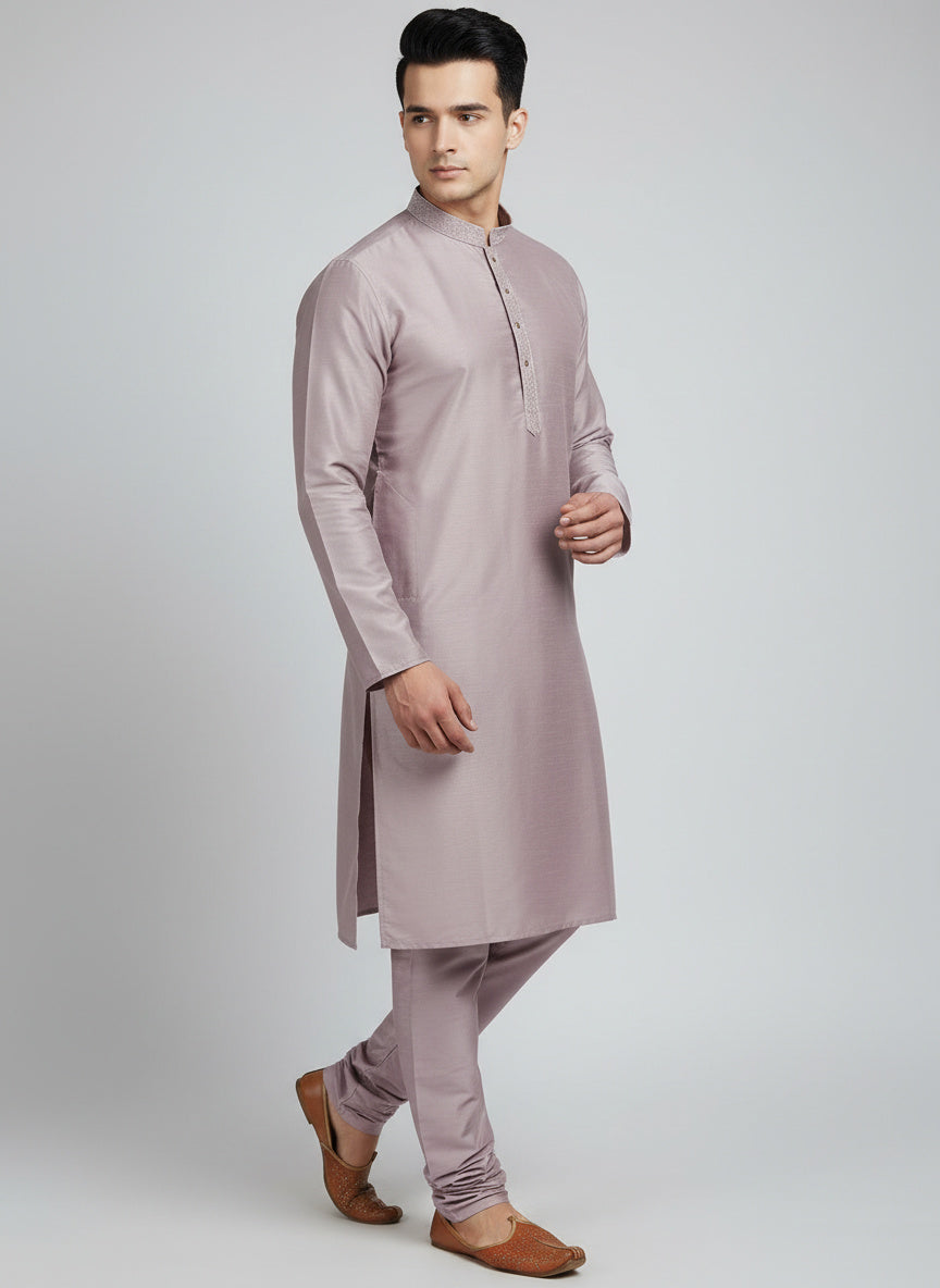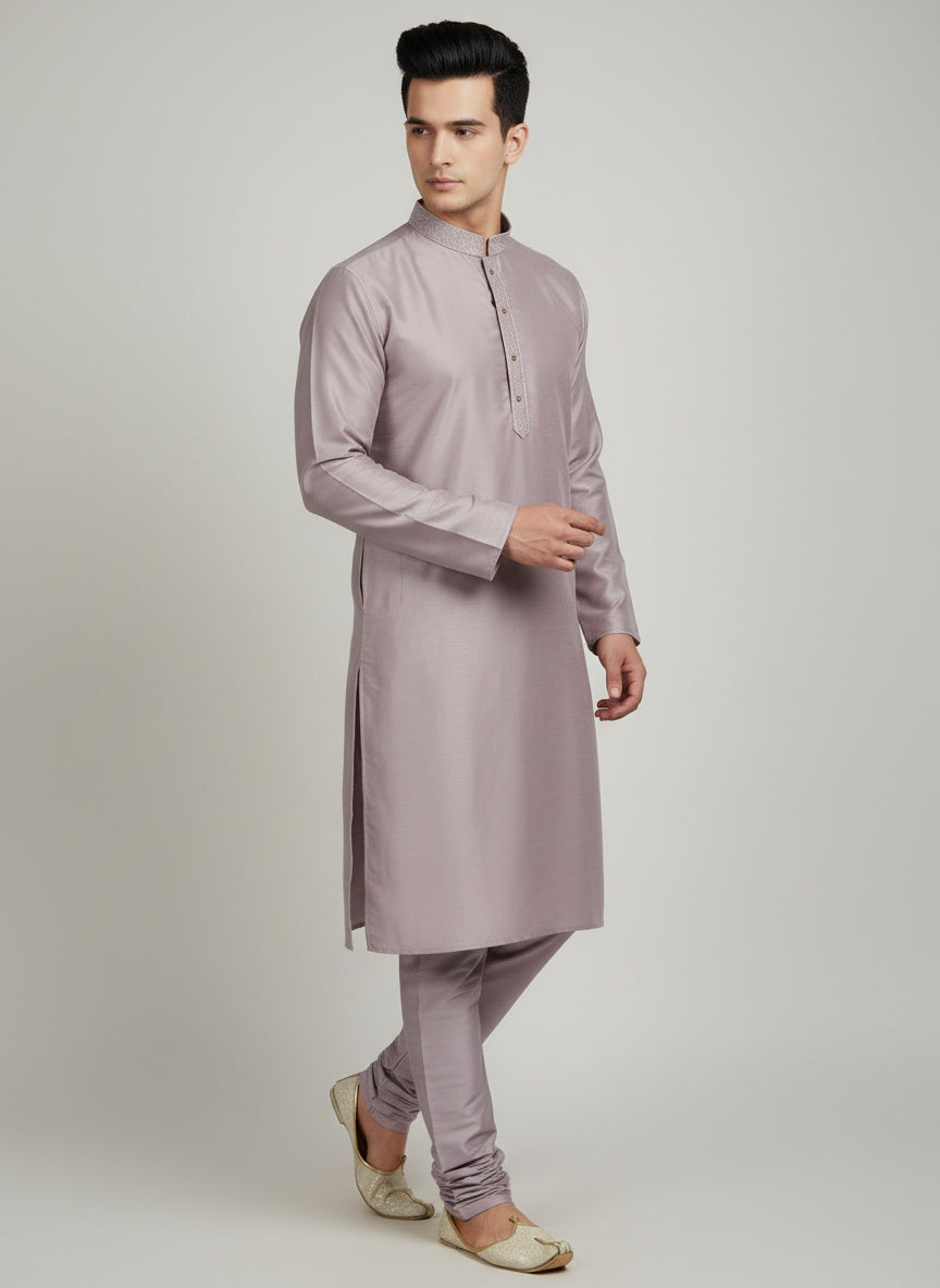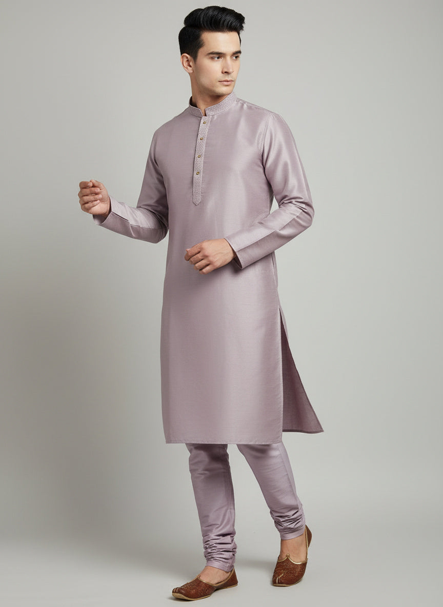 Lilac Cotton-Silk Kurta Set with Matching Color Pyjama Pant