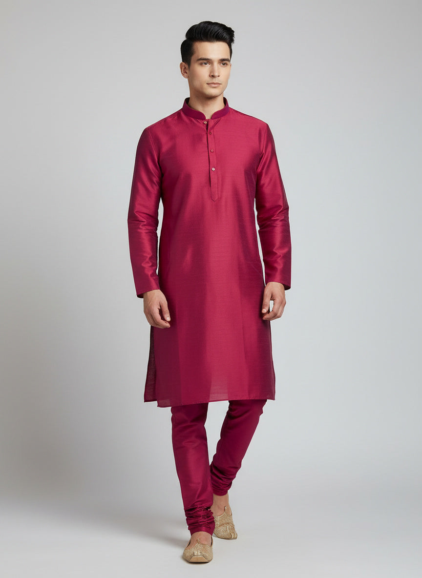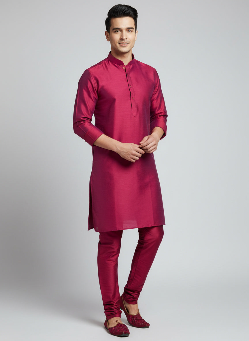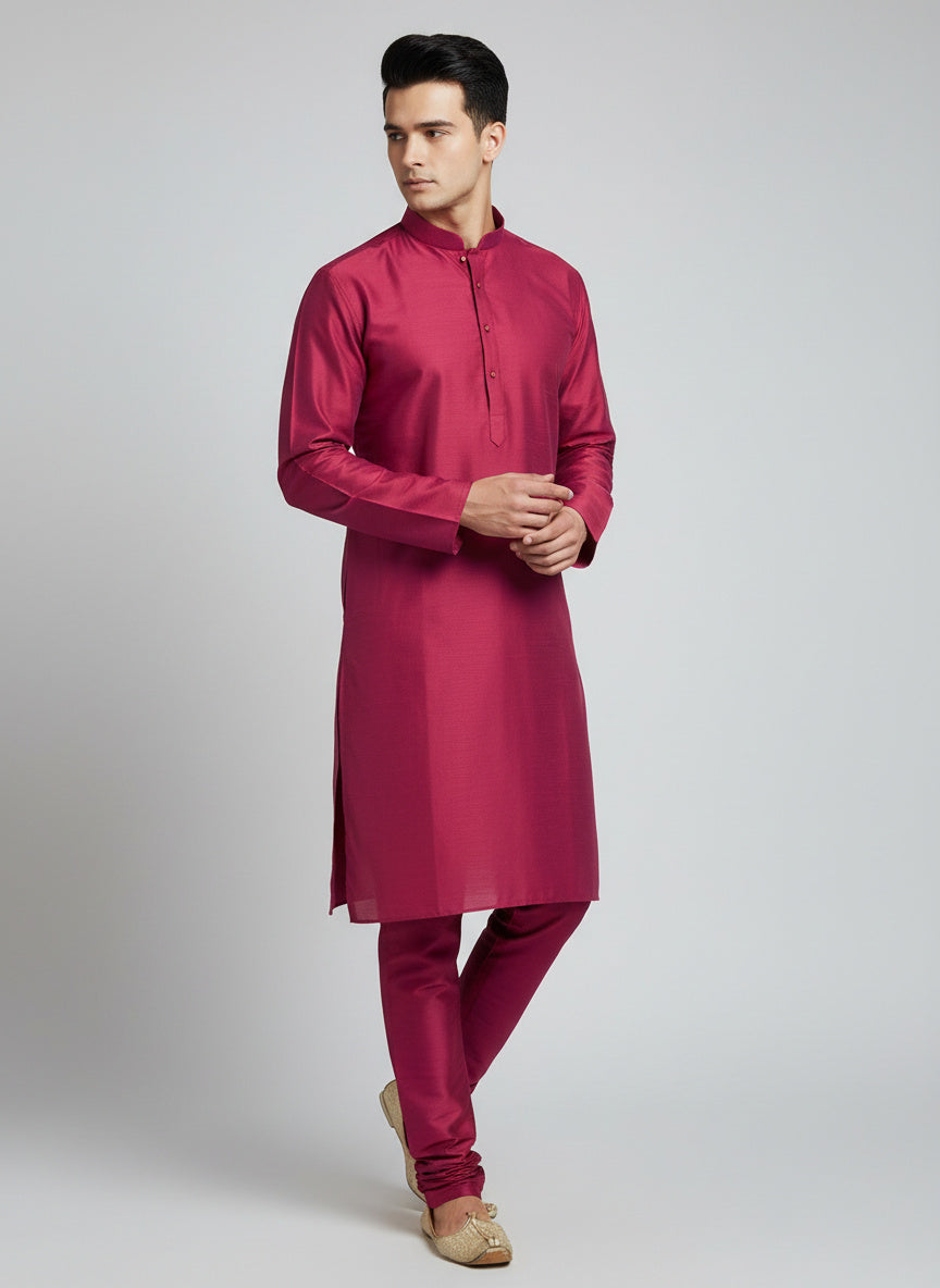 Rani Pink Silk Kurta Set with Matching Color Pyjama Pant