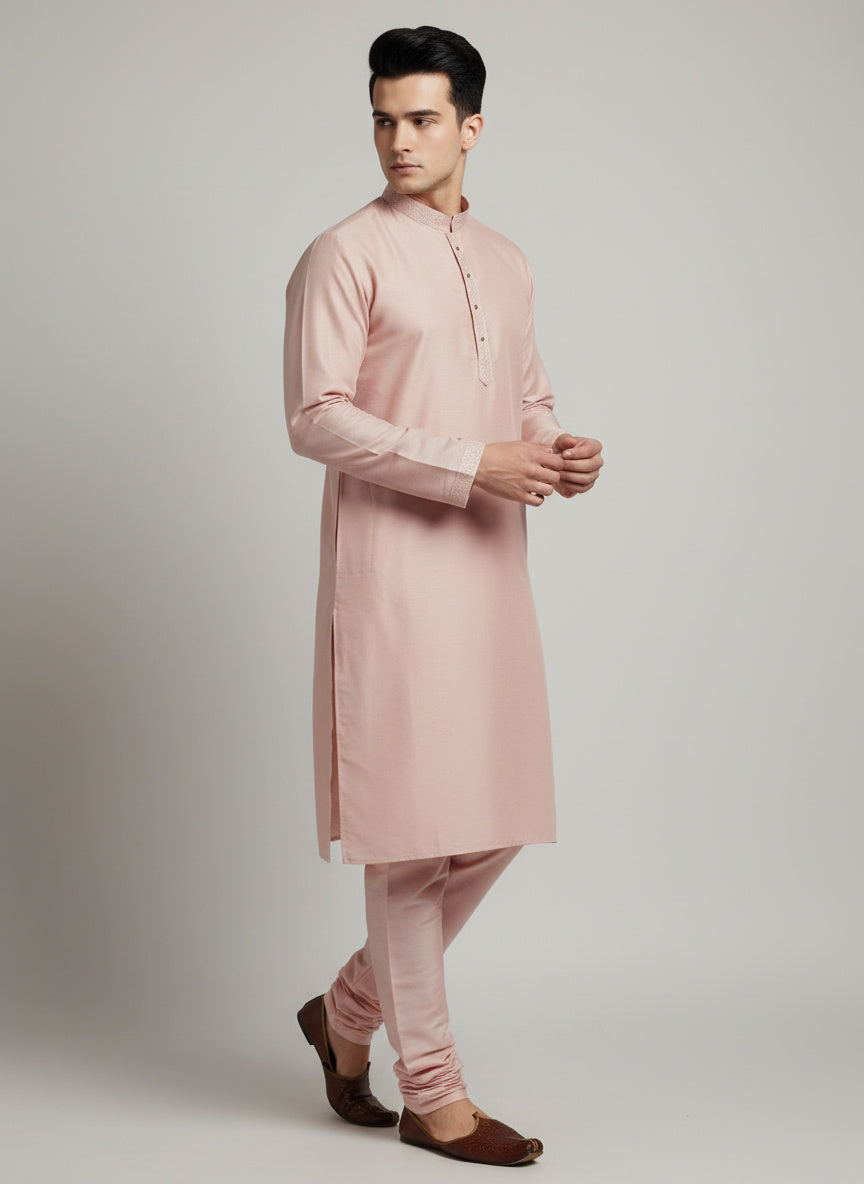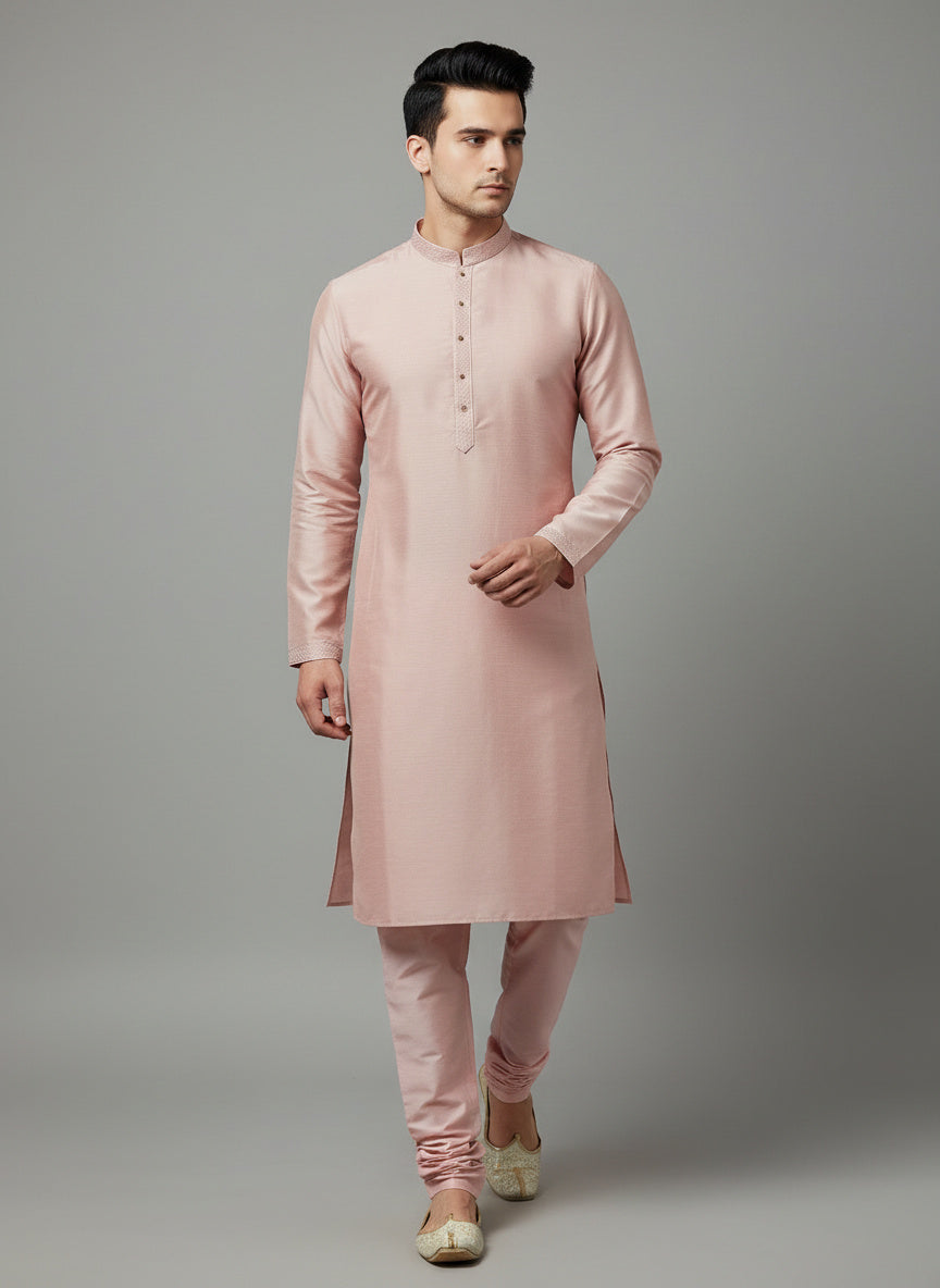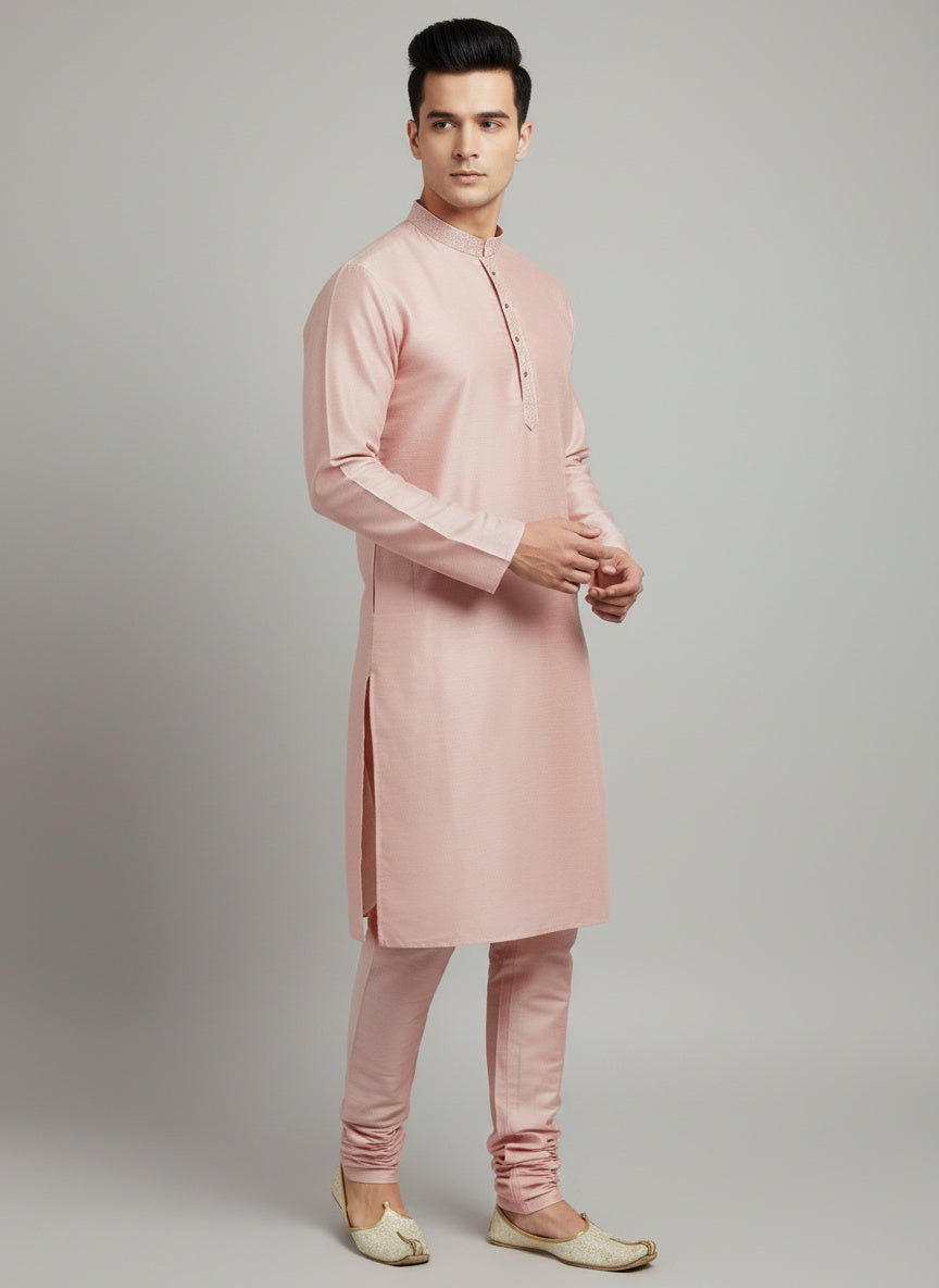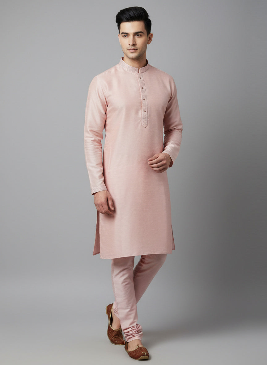 Pink Cotton-Silk Kurta Set with Matching Color Pyjama Pant