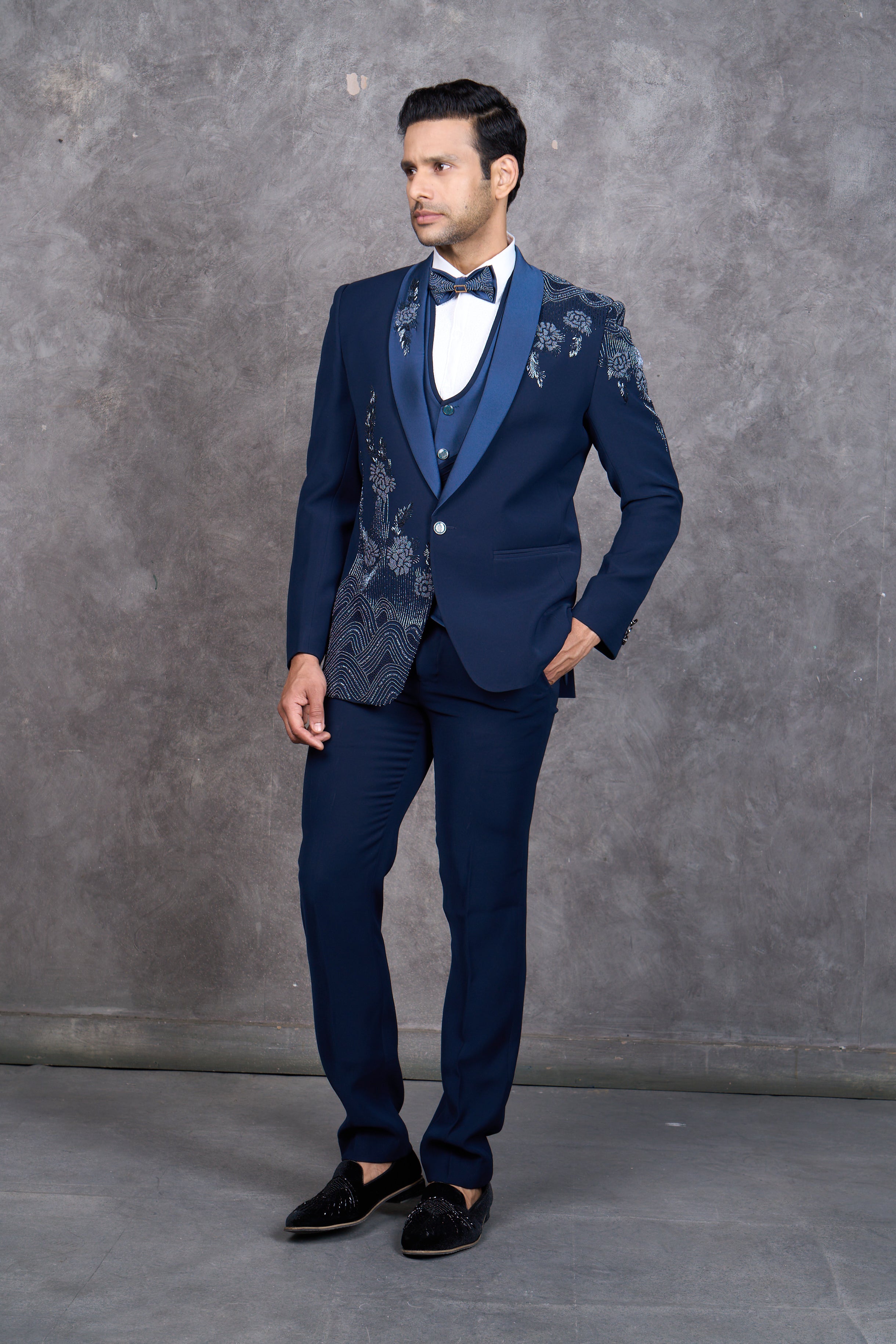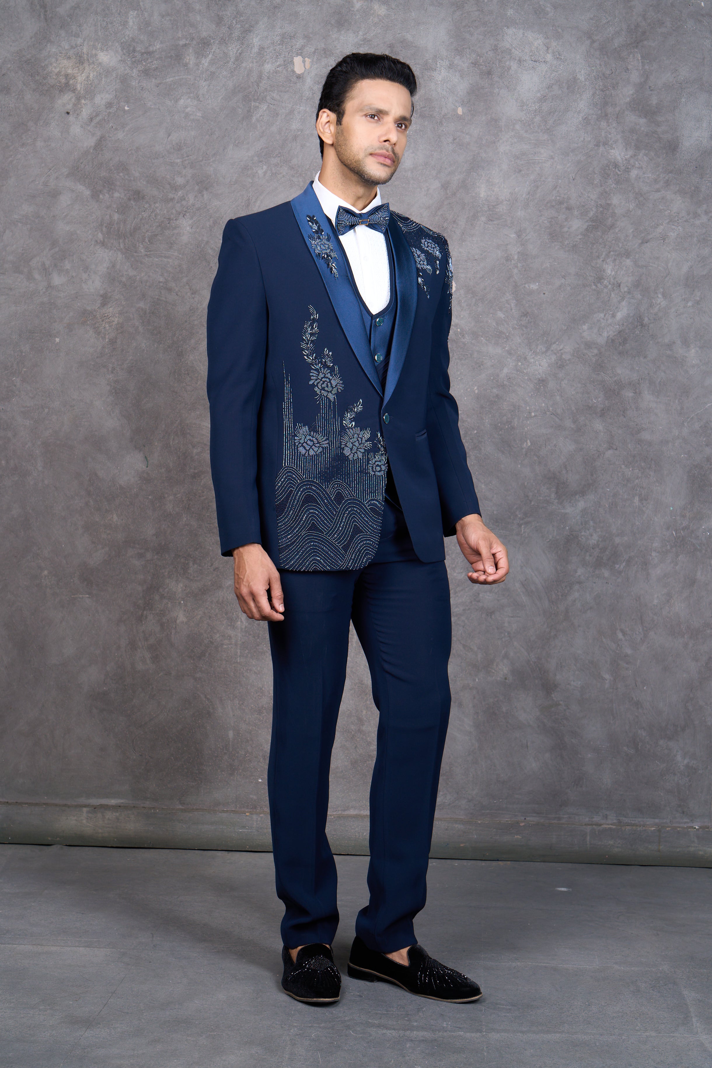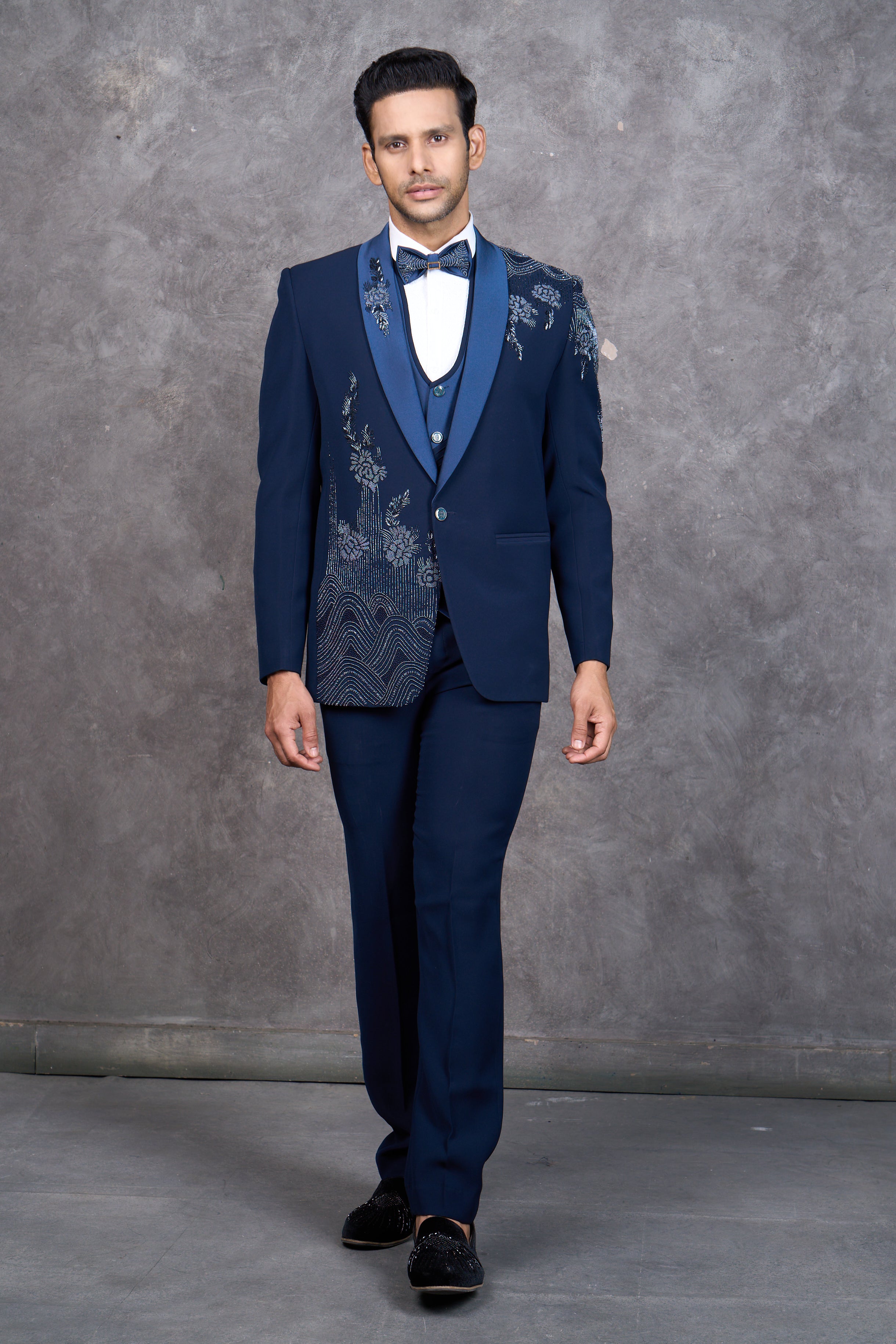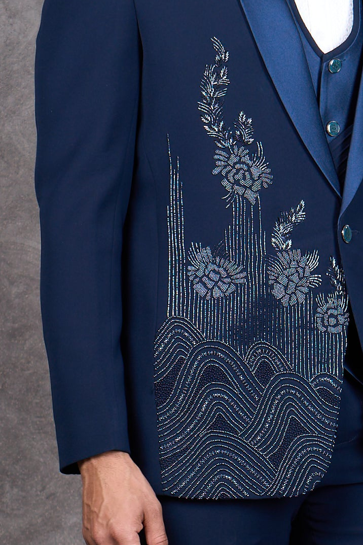 Royal Blue Tuxedo with Floral Embellished Embroidery