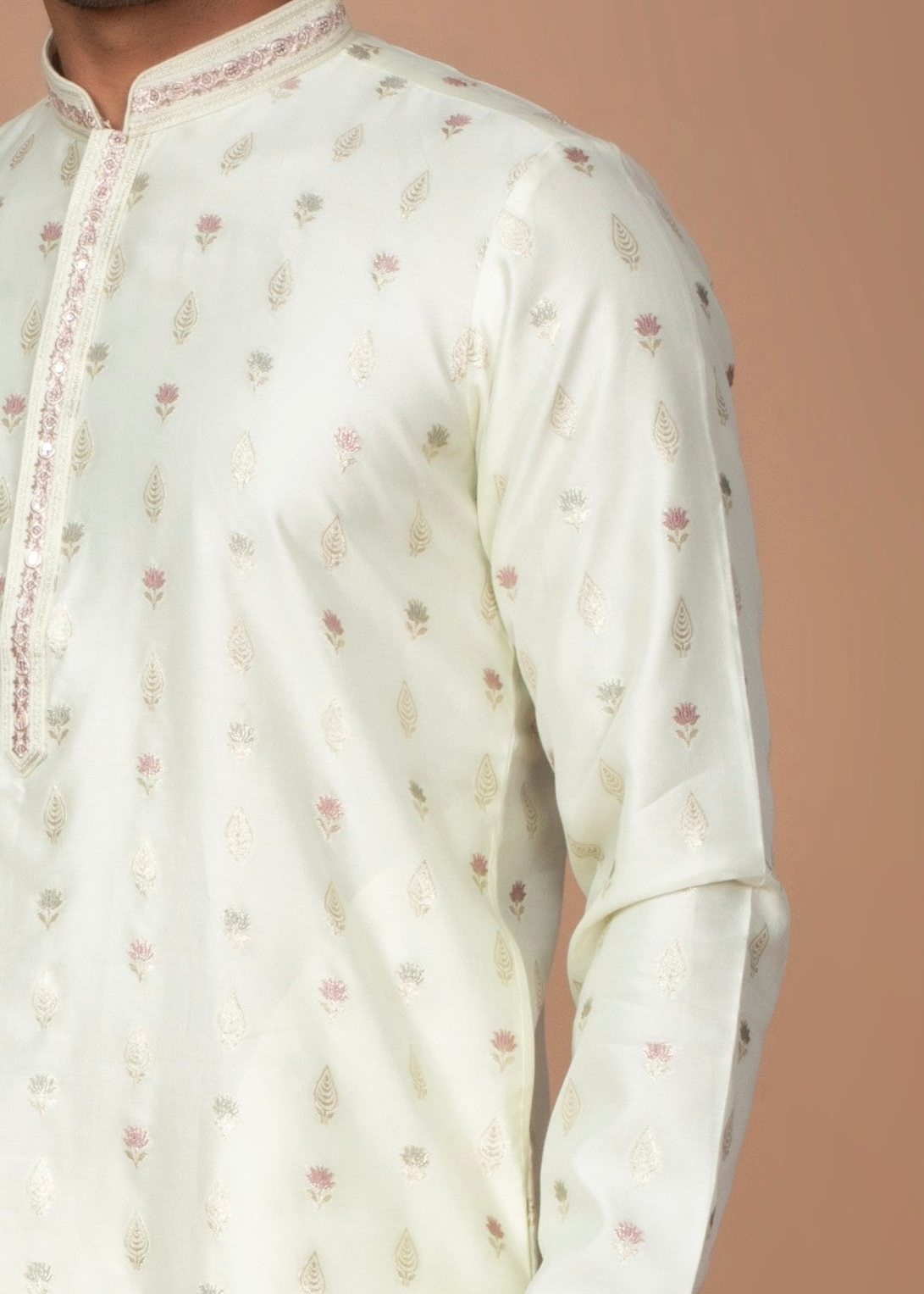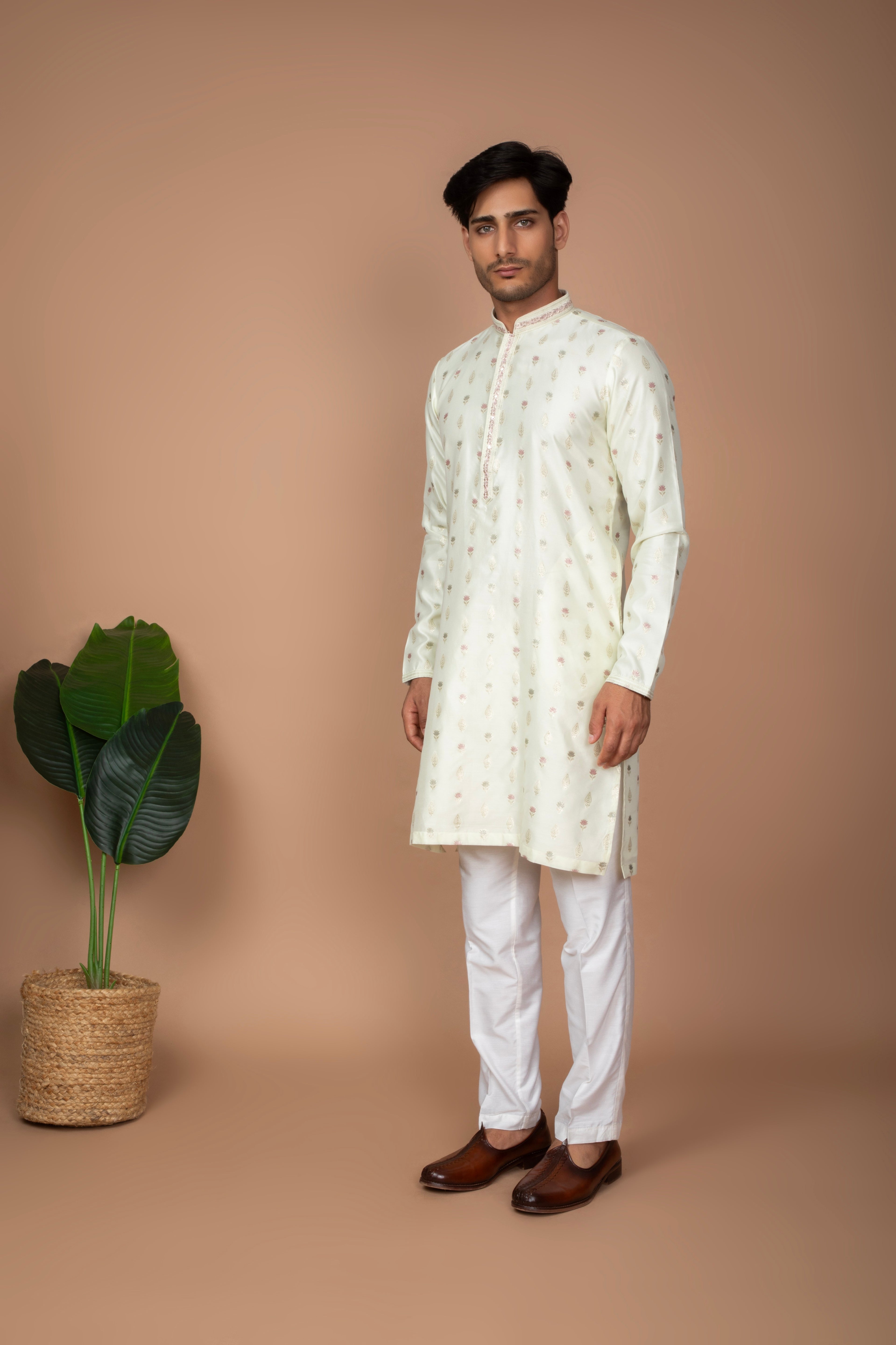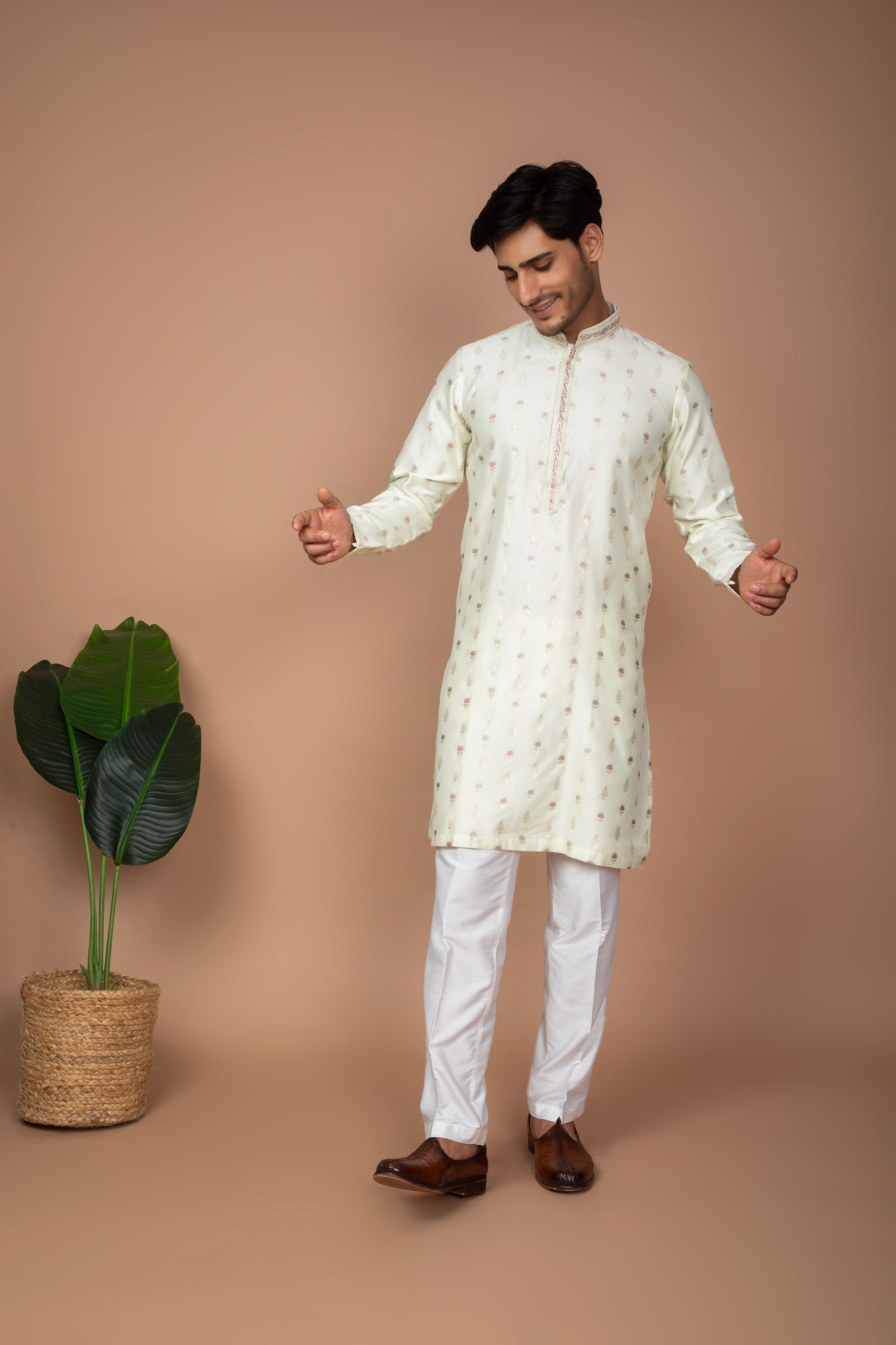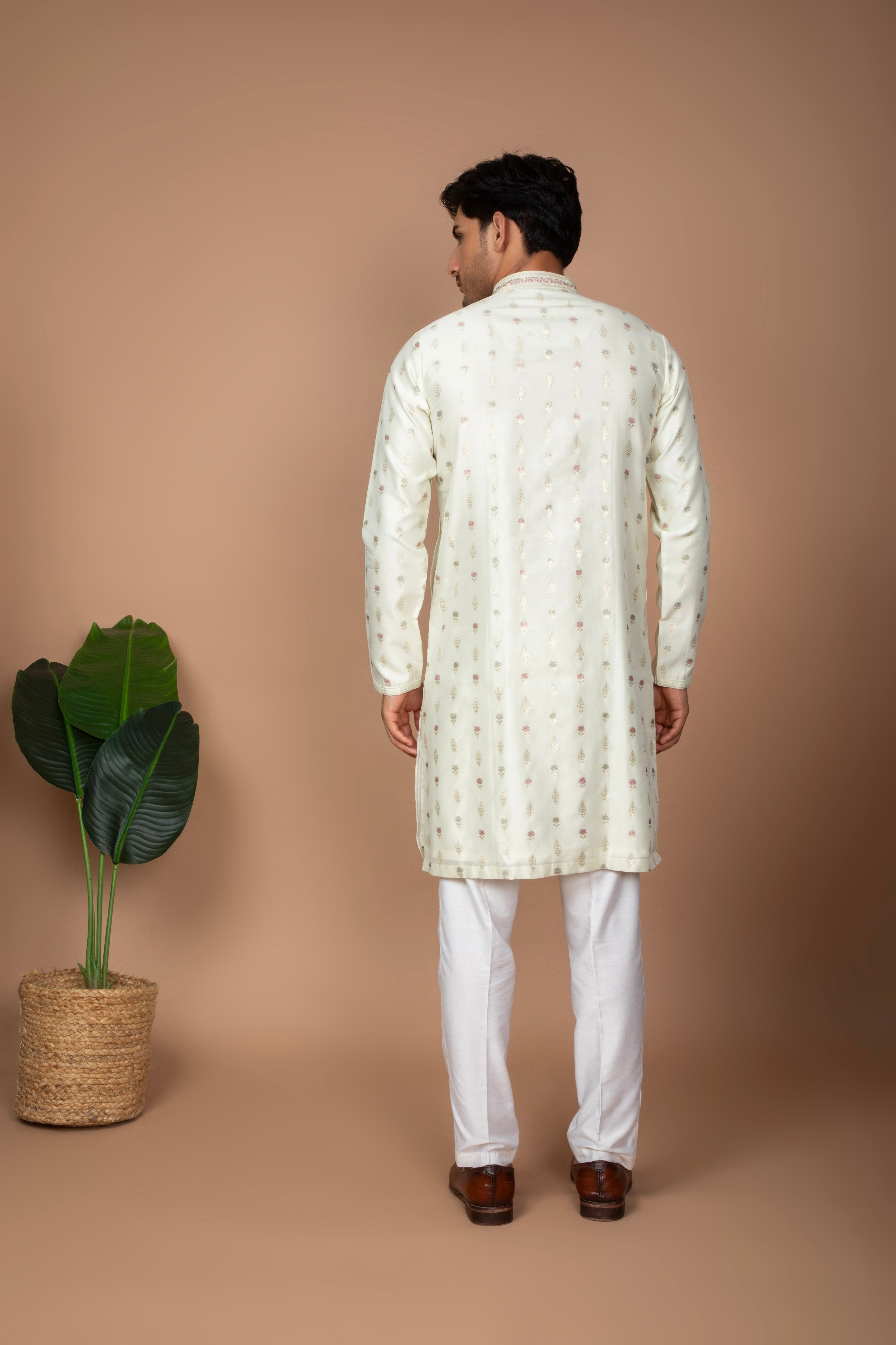 Off-White Silk Kurta with Lotus Butti Embroidery