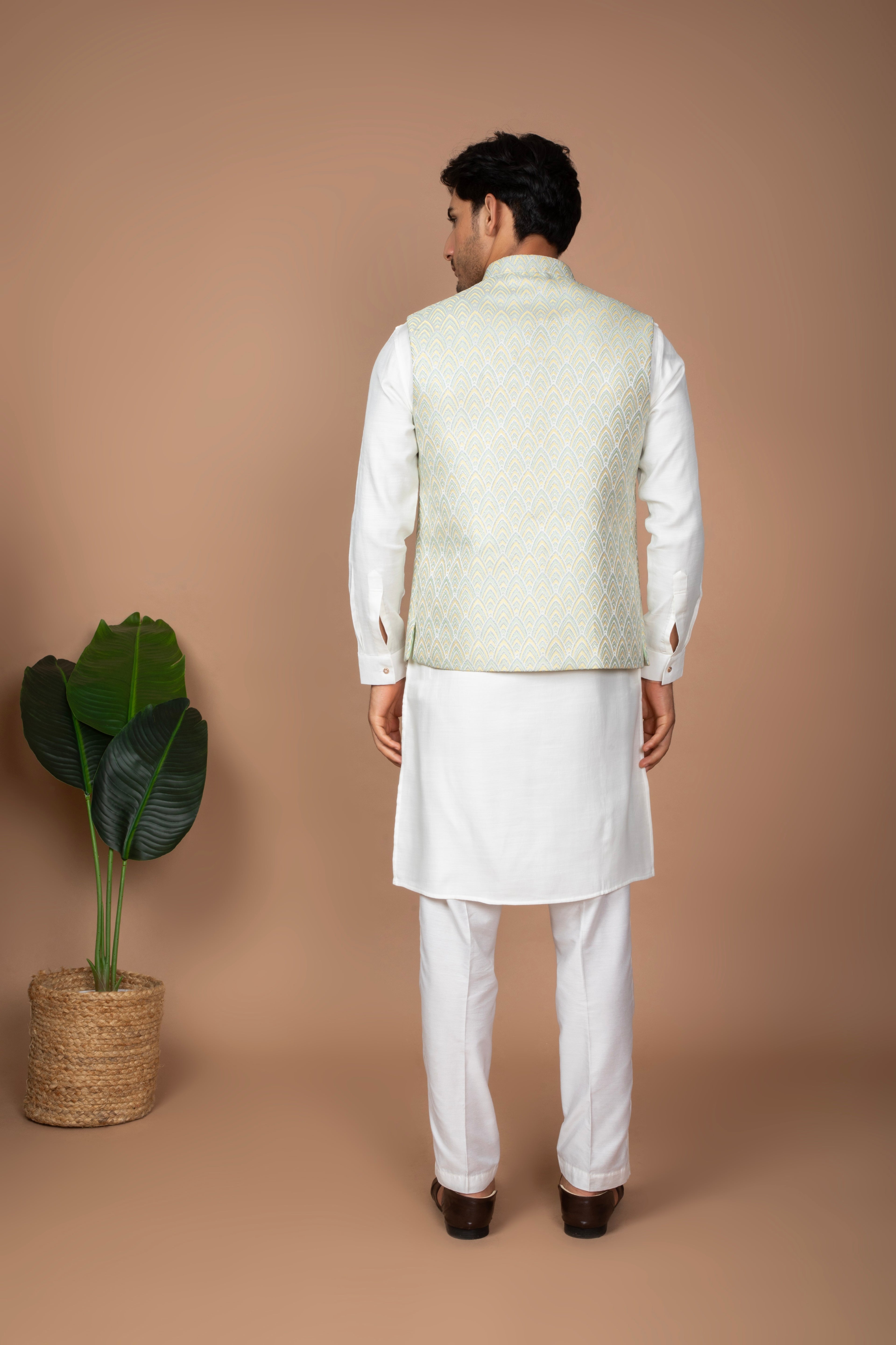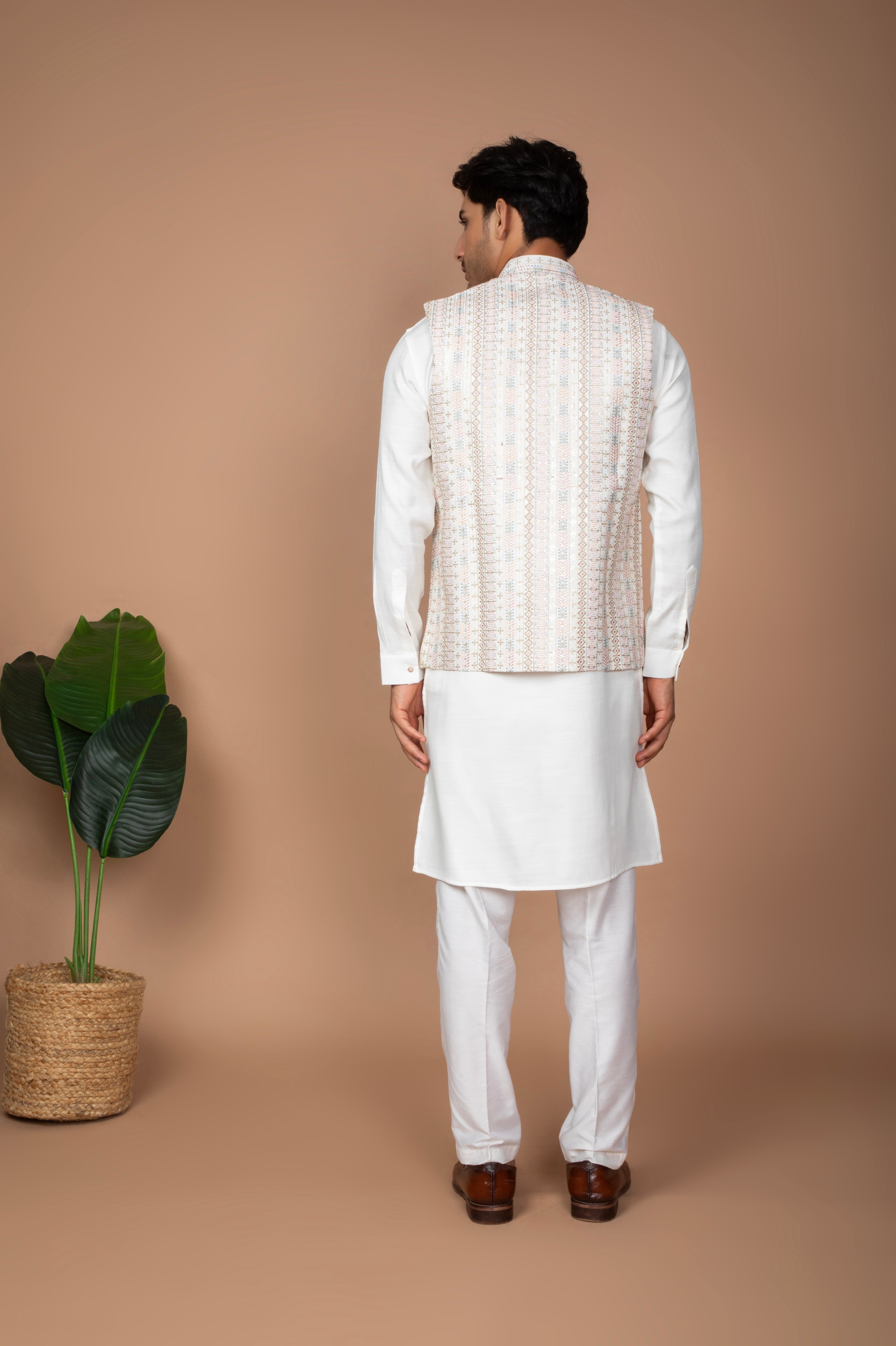 White Cotton-Silk Kurta Jacket Set with Multi-Color Embroidered Sequins