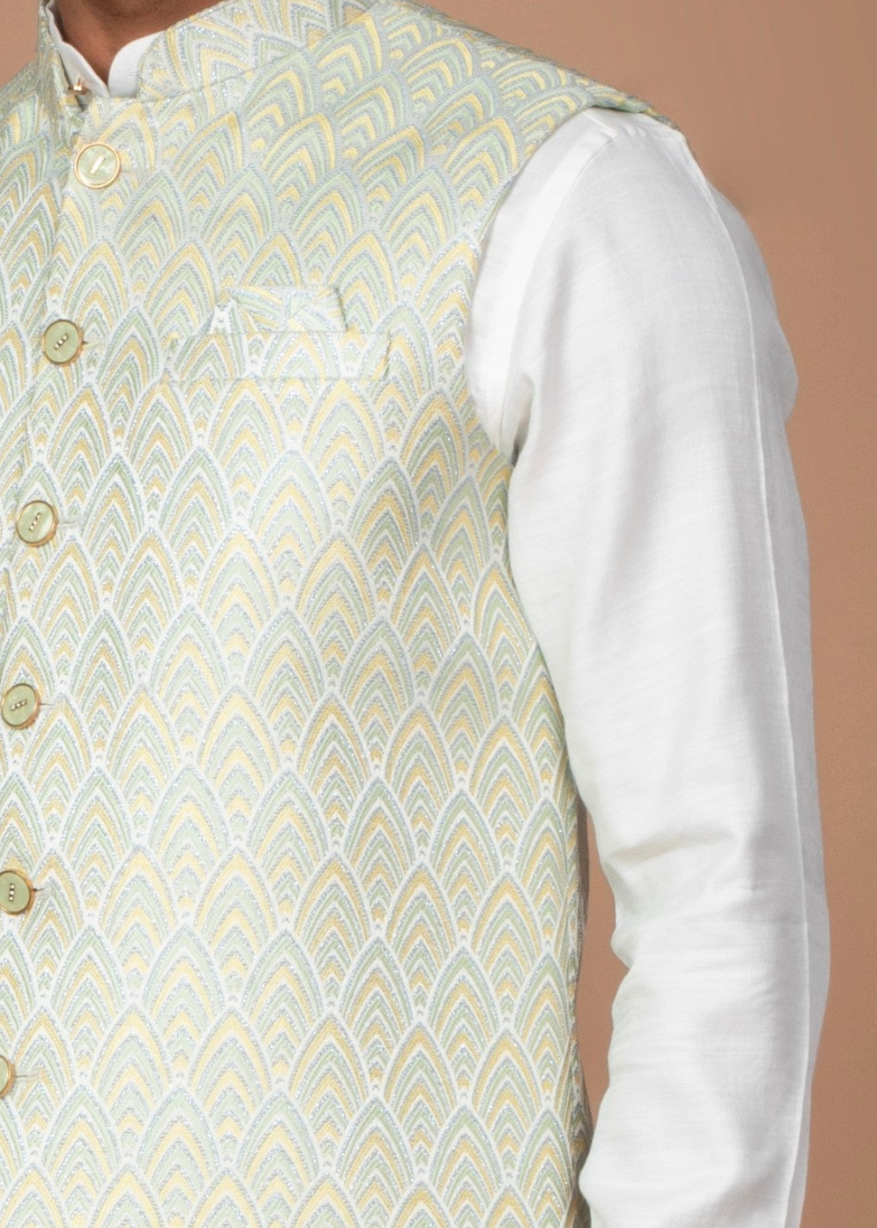 Champagne Gold Jacquard Jacket with Intricate Geometric Design