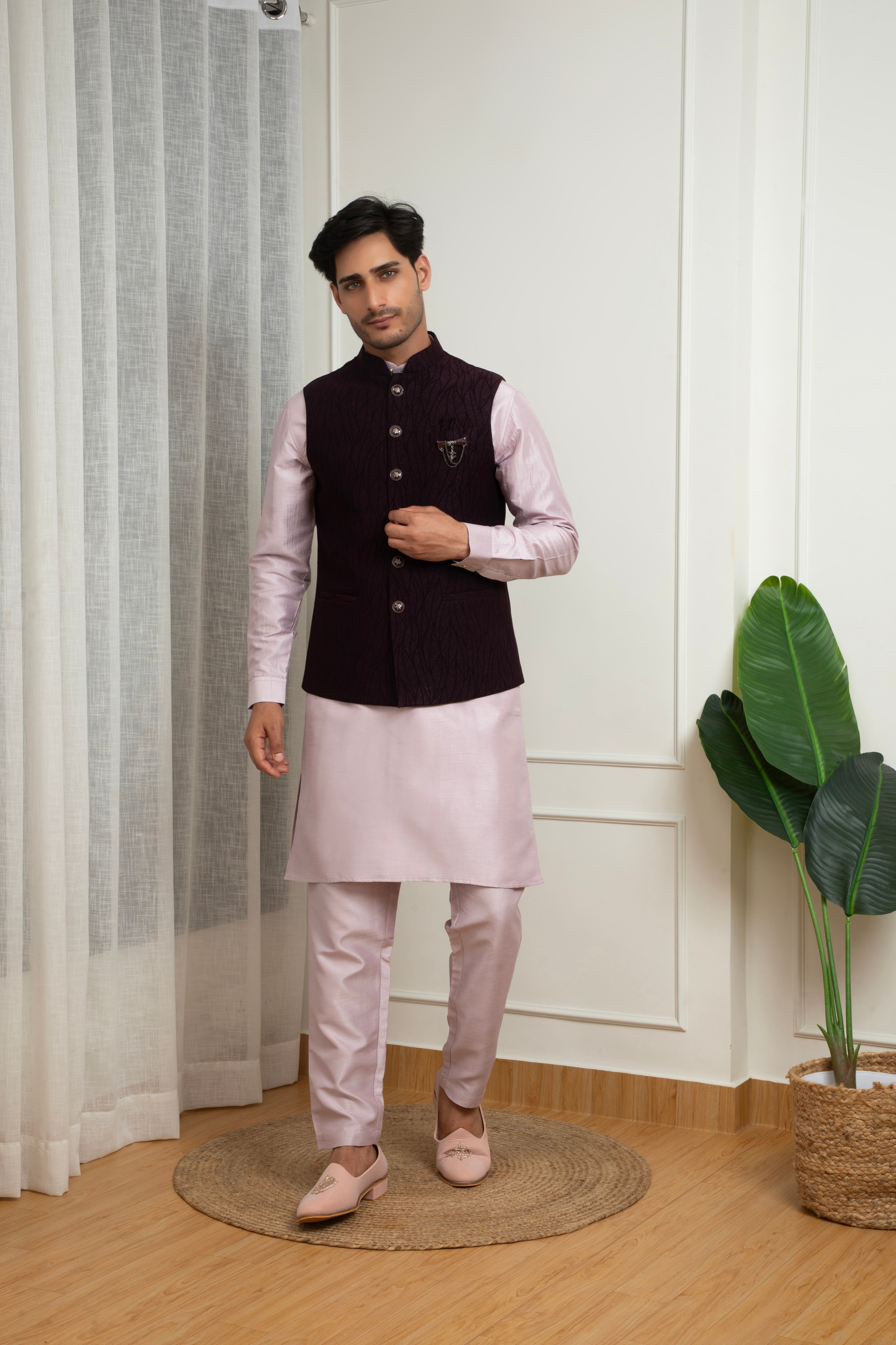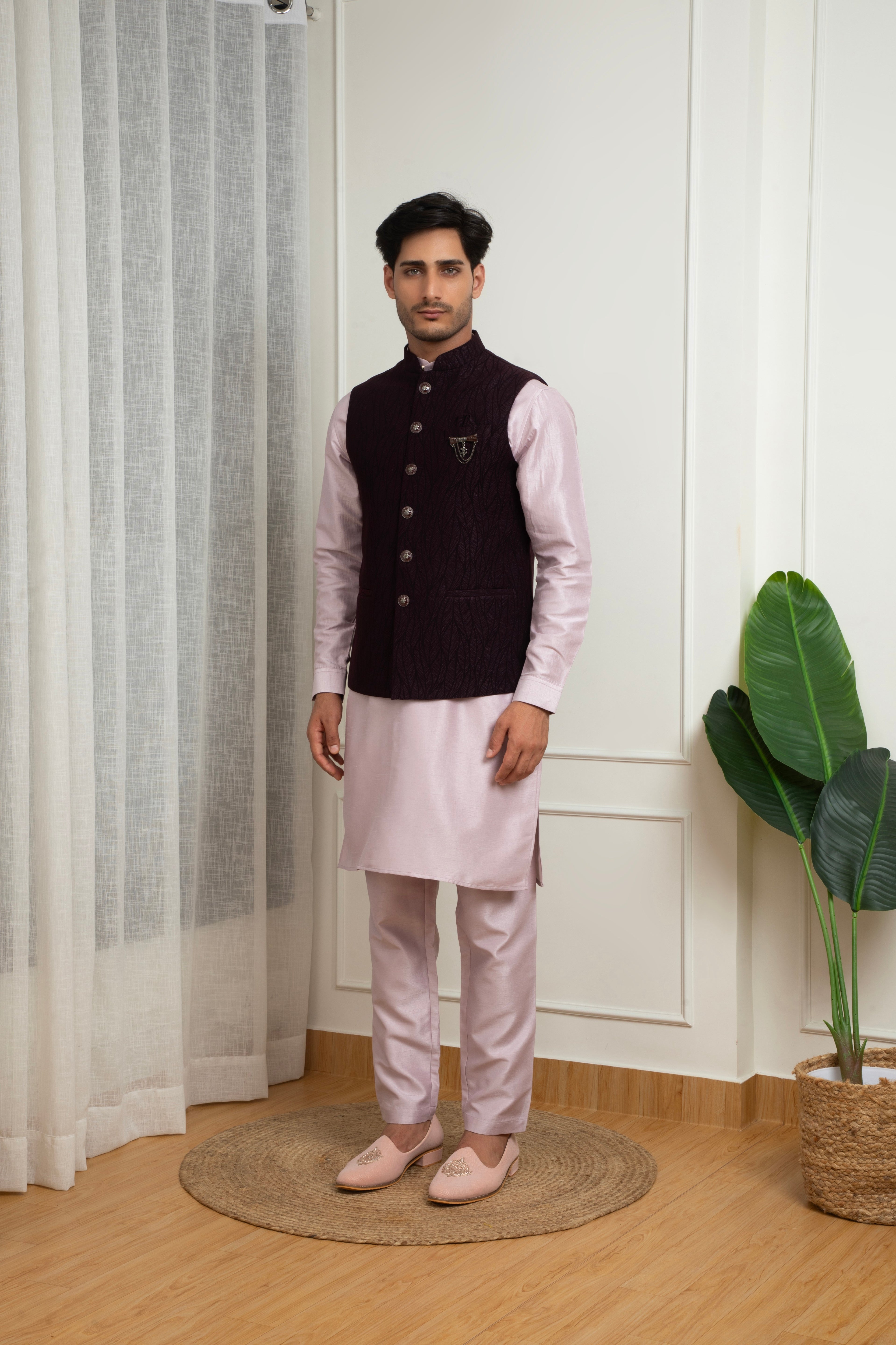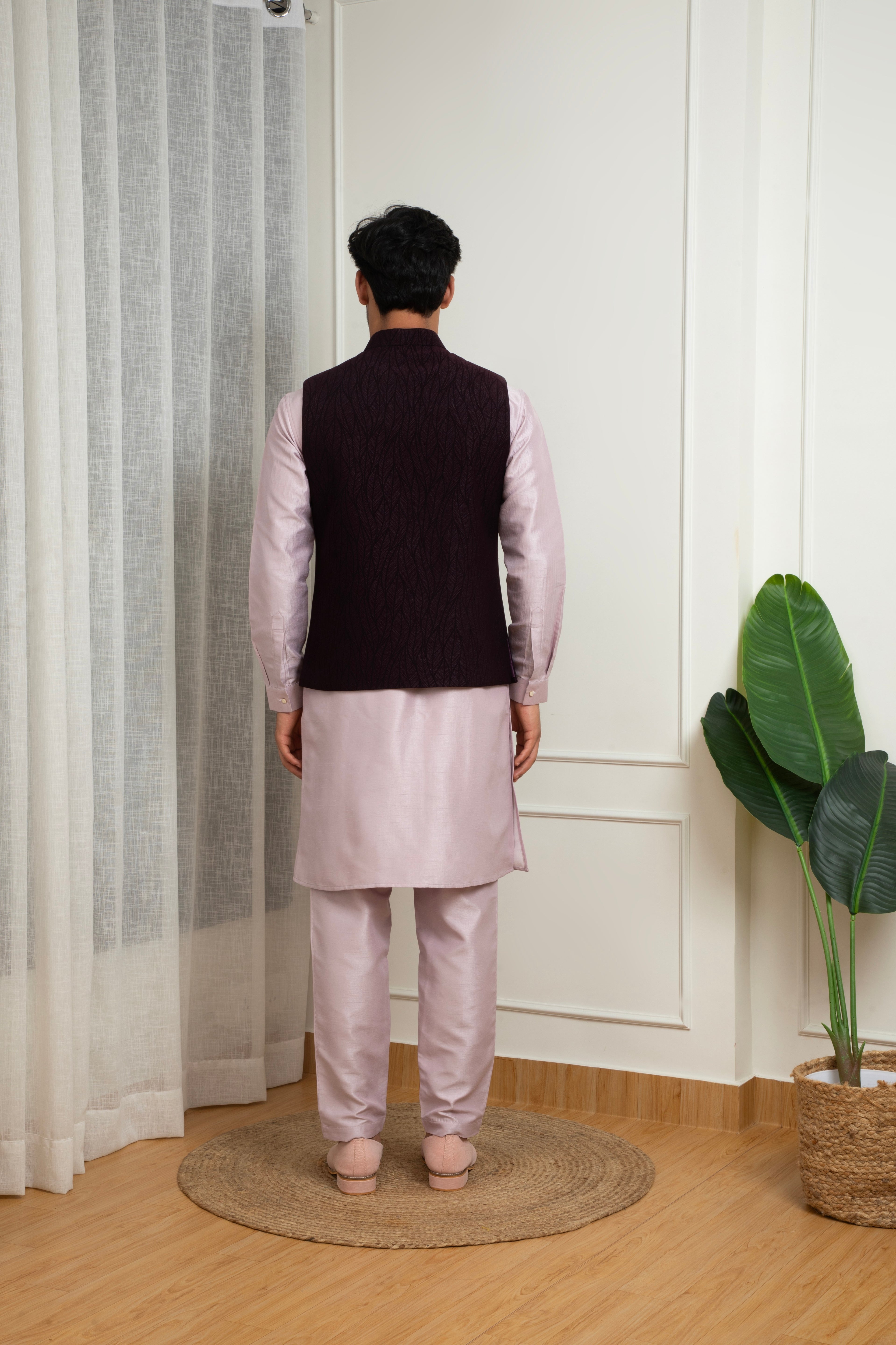 Rose Gold Jacquard Jacket with Fine Geometric Pattern