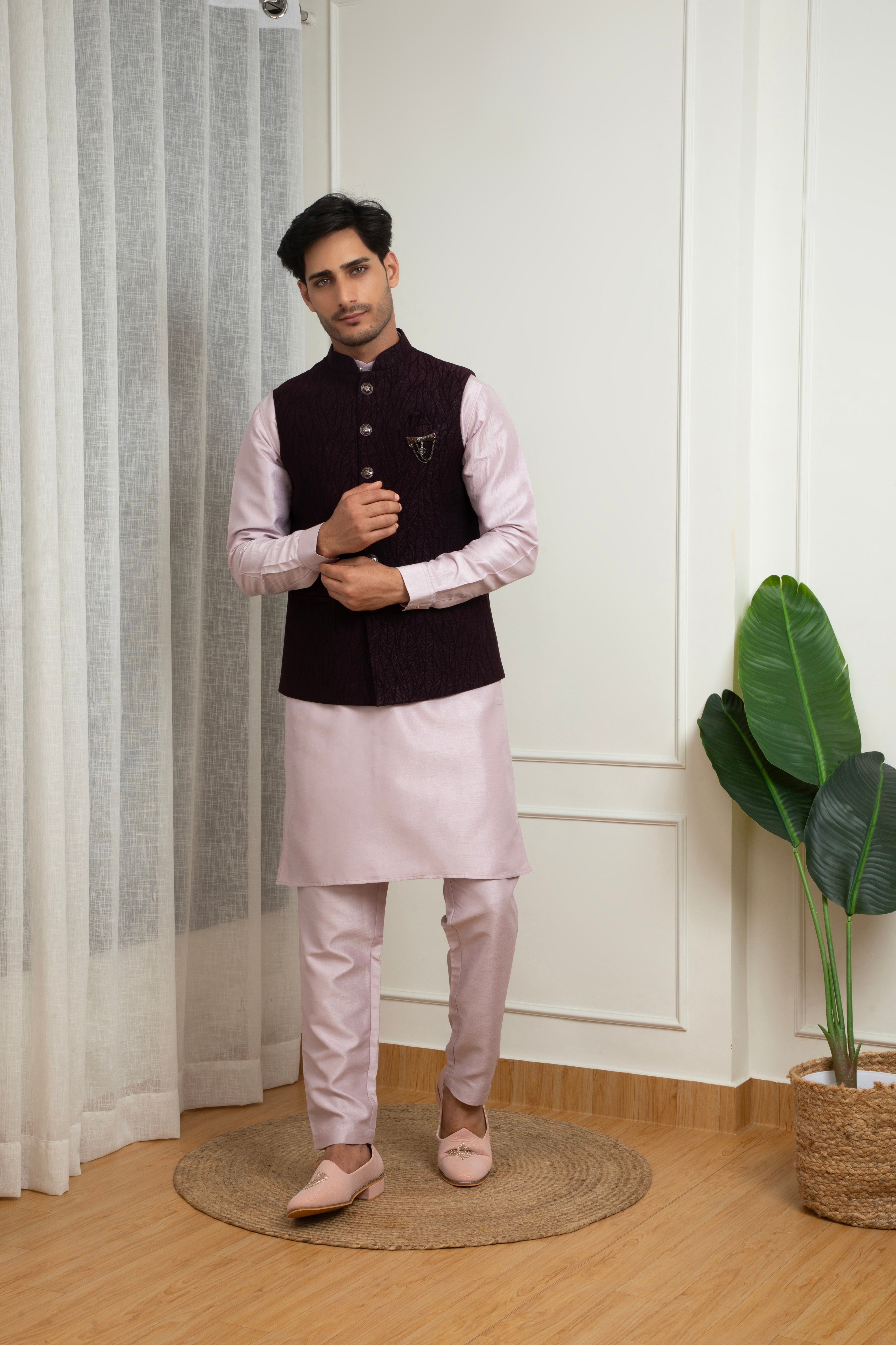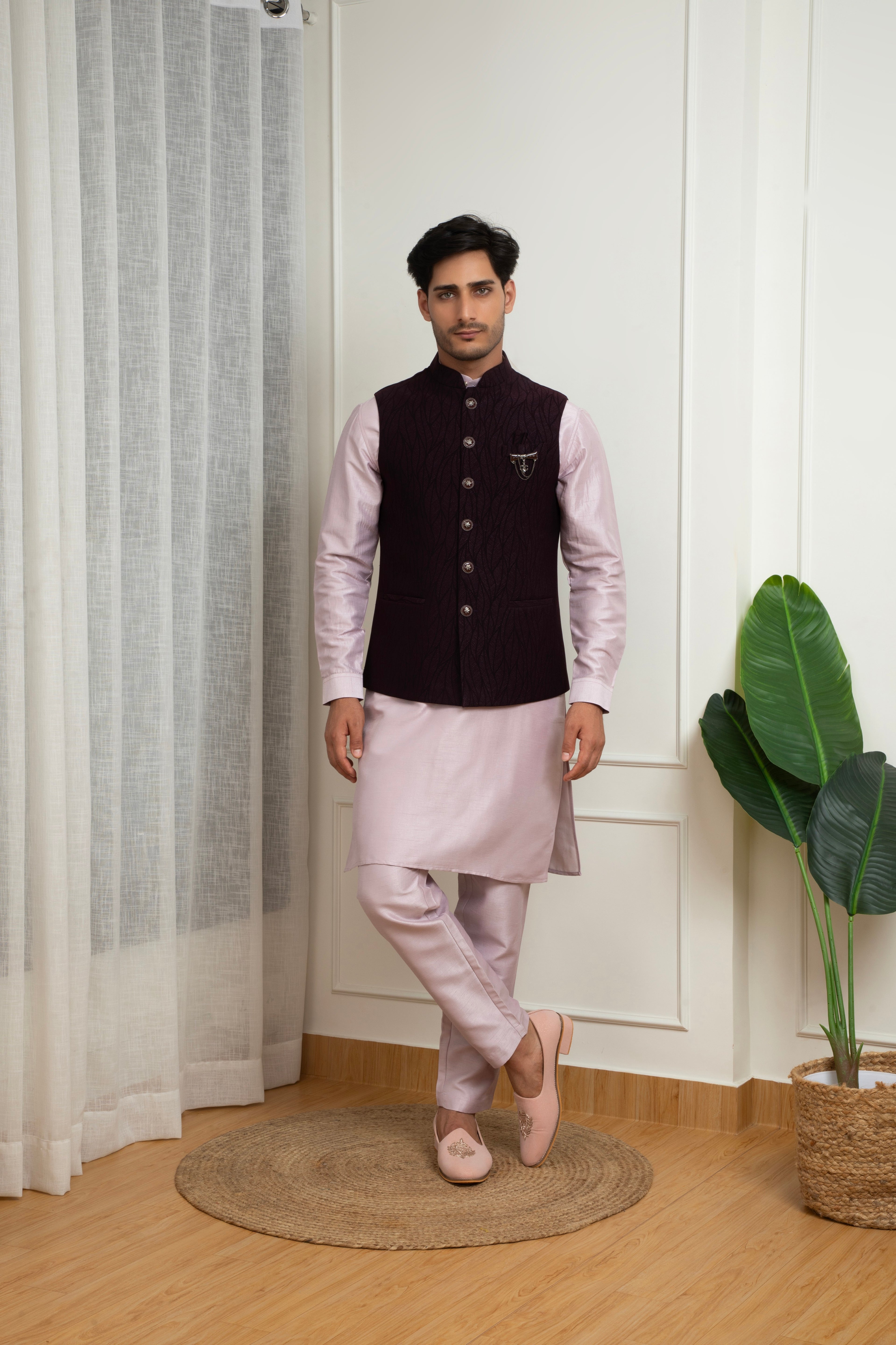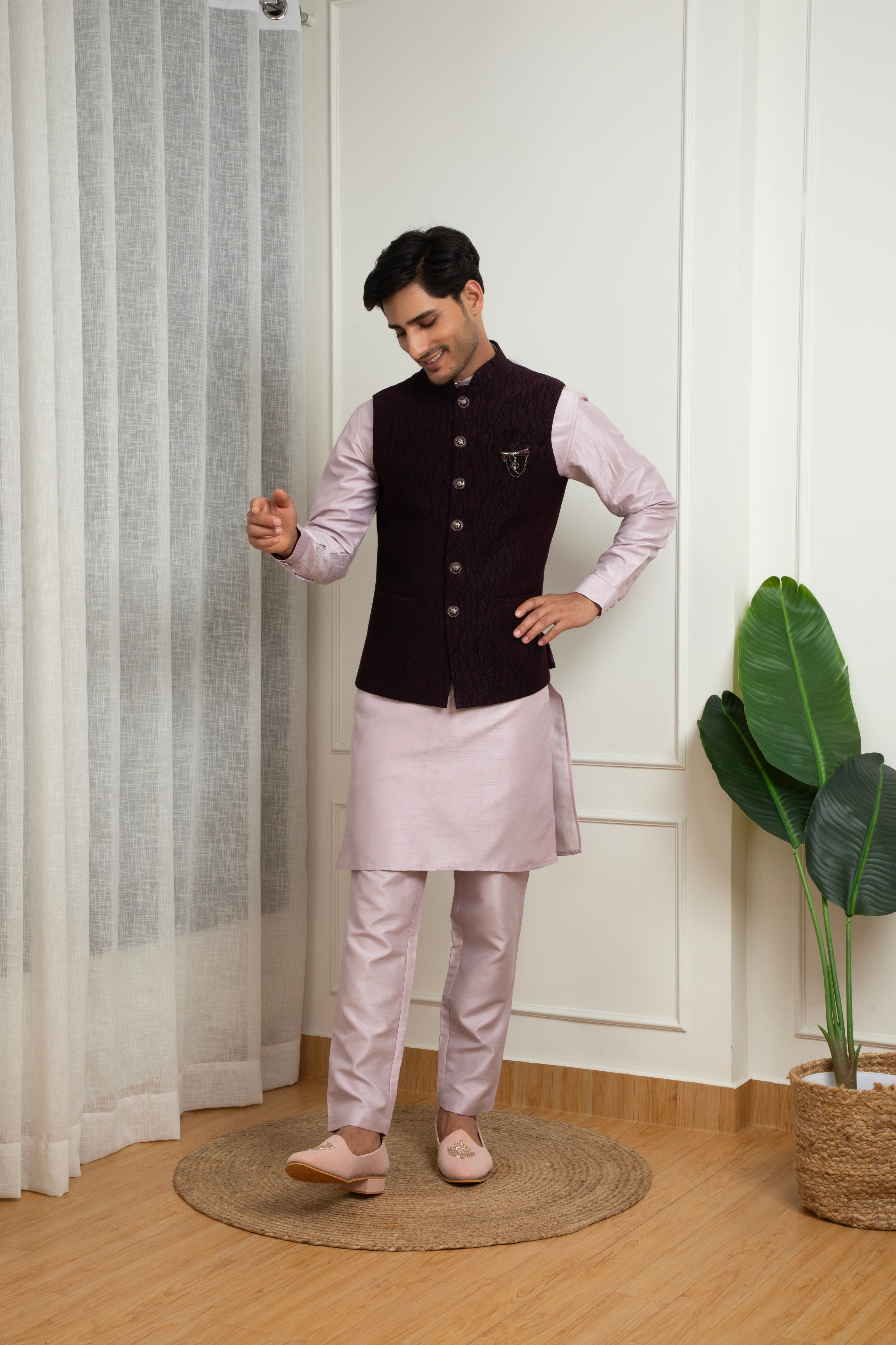 Rose Gold Jacquard Jacket with Fine Geometric Pattern