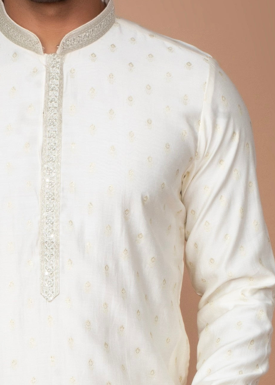 Off-White Cotton Silk Kurta with Embroidered Butti