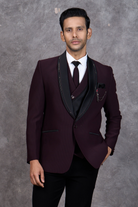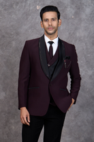 Solid Wine Tuxedo with Minimal Lapel Design
