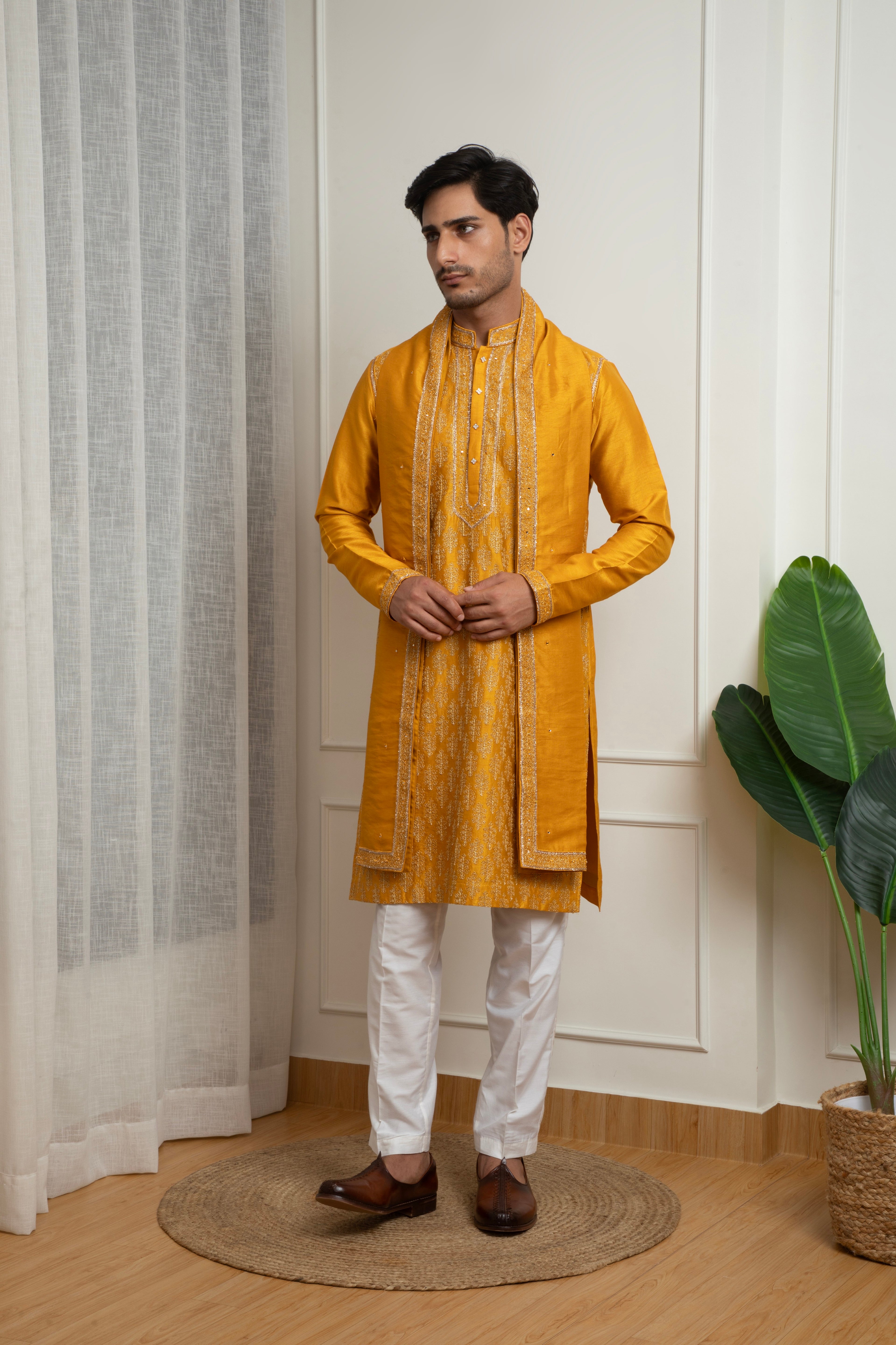 I bought this very delightful pattern of kurta suit & jacket from dulhapaksh store.